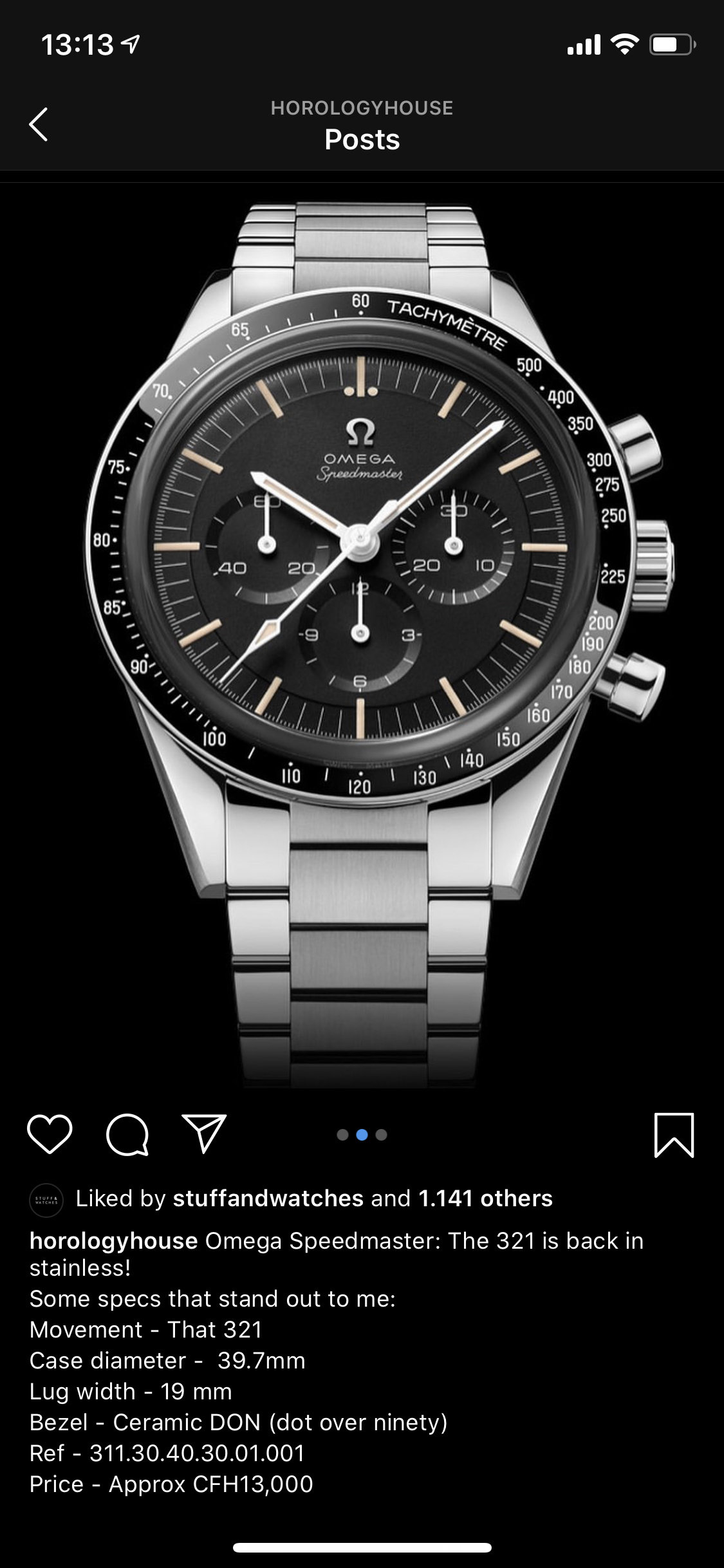 Ik kwam dit zojuist tegen op het internet. De Speedmaster is terug met 321 uurwerk. Erg geslaagd mijns inziens. Wel erg aan de prijs. Iets in de richting van 13k.