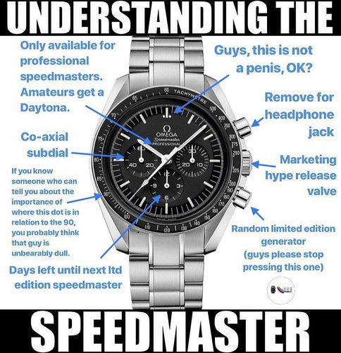 Misschien moet iemand ze even uitleggen daar bij Omega dat het wel gewoon de zoveelste Speedmaster blijft, maar dan met een kek uurwerkje…