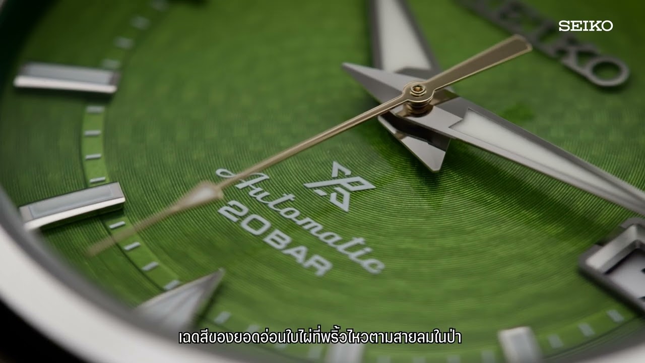 Based on the theme of “Raise the Future”, the SBPY177 solar chronograph features a forest green dial with a striped pattern patterned after the shape of a leaf.