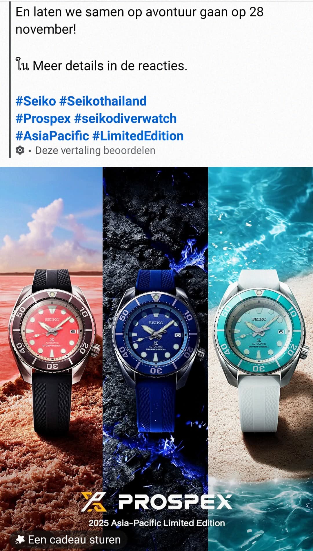 Allemaal verschillende kleuren in beperkte oplages, maar het gaat natuurlijk om precies hetzelfde horloge.