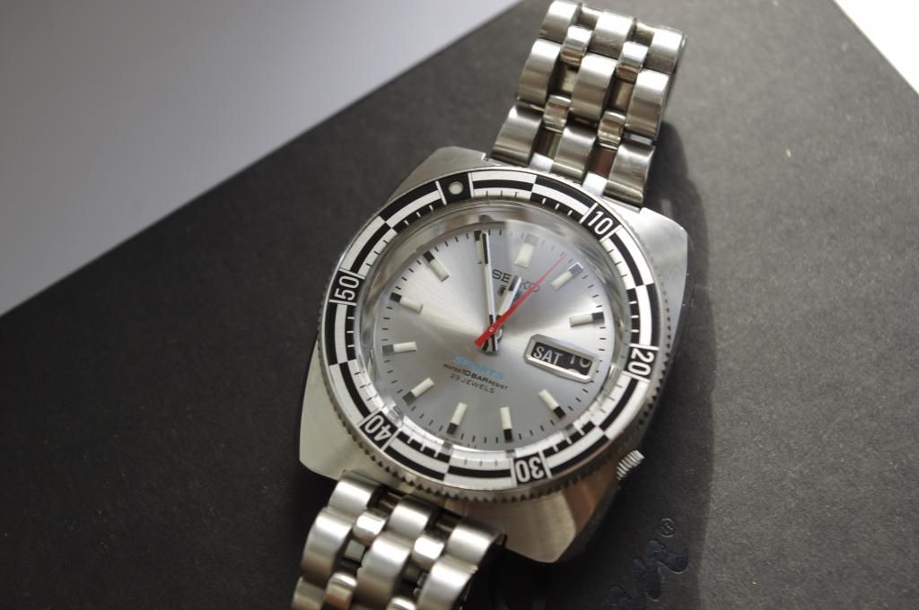 Kon even geen eigen plaatje vinden, dus even op internet gezocht en ‘geleend’. Sinds kort een nieuwe laptop. Maar de harde schijf van m’n oude moet ik nog eens goed uitzoeken. Die staat helemaal vol met horlogefoto’s. En dan nog dat gedoe met dat Photobucket. Anyway, zie trouwens dat ik me vergist heb. Dit is geen 5 maar een gewone Seiko. Maar in ieder geval ook zo’n leuke vintage diver. En dit is toch wel mijn absolute favoriet. Als ik die nog eens in een beetje goede staat voor een goede prijs tegenkom, dan is ie van mij!