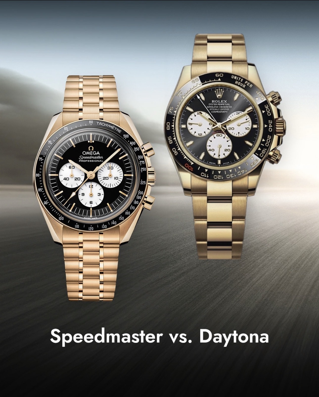 Kijk: toen Omega met de Speedmaster op “Oysterflex” kwam, was vrij duidelijk waar de inspiratie vandaan kwam.