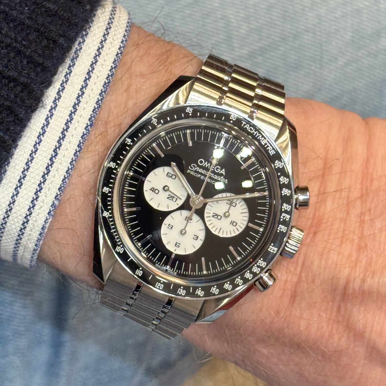 Mooi horloge en de normale speedy is dan ineens wel heel erg een toolwatch. ( wat die natuurlijk ook is )