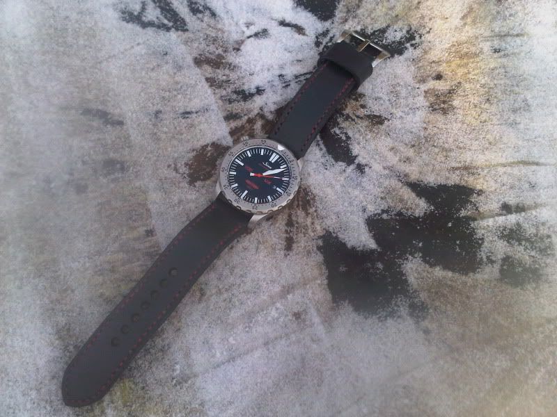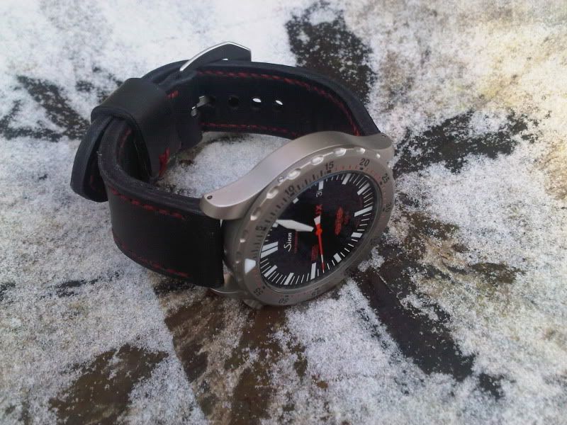 Heb net een zwartleren bandje voor mijn UX van Henrik gekregen. Eerst twee dagen in de vaseline en goed inwrijven, voordat hij om de pols gaat. Wordt hij veel soepeler van en de levensduur is ook veel beter. De rubberen band met sluiting is nog on-uitgepakt en blijft dat ook. Kreng van een ding…