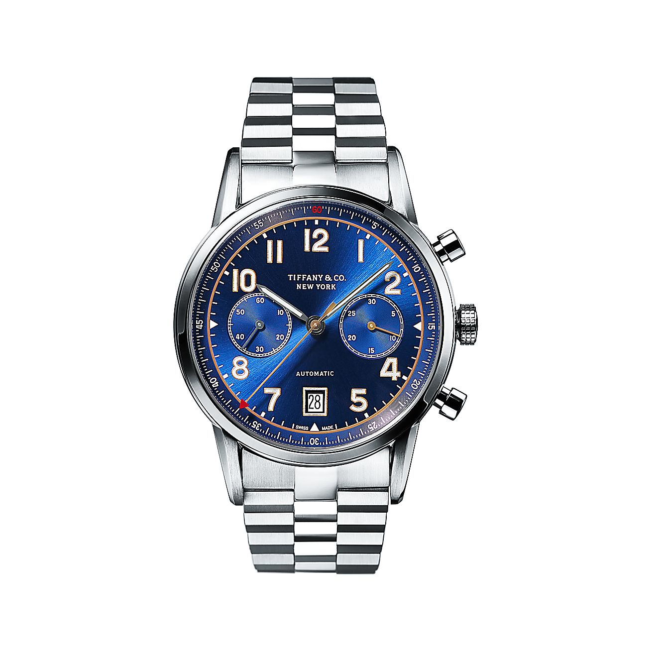Herren-Chronograph aus Edelstahl. Blaues Soleil-Zifferblatt mit
