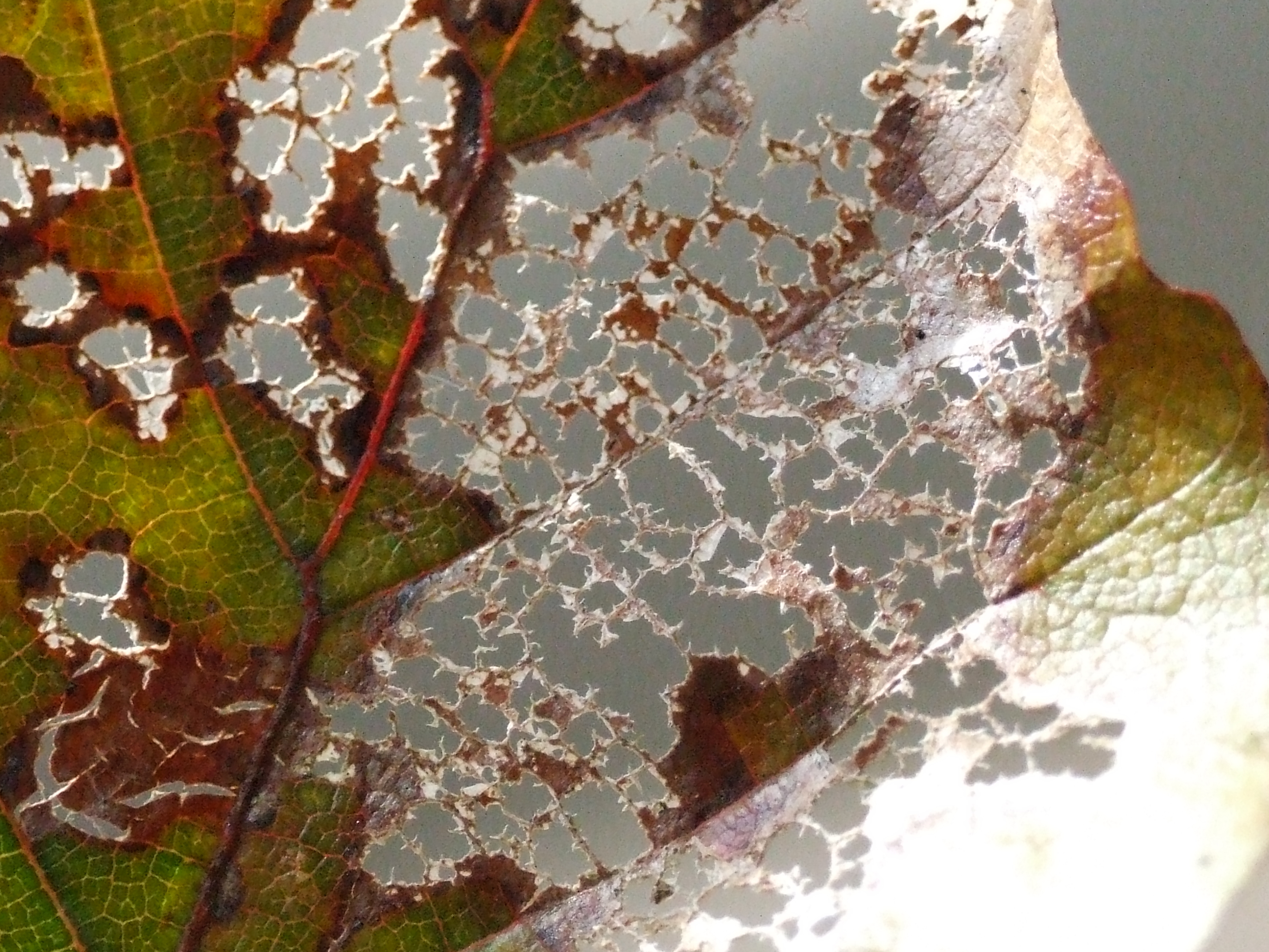 Ik heb ooit eens macro-opnames gemaakt van een blad dat aan het vergaan was… ik denk dat hij daar deze inspiratie vandaan gehaald heeft… (Niet van mijn fotoos maar het fenomeen! )