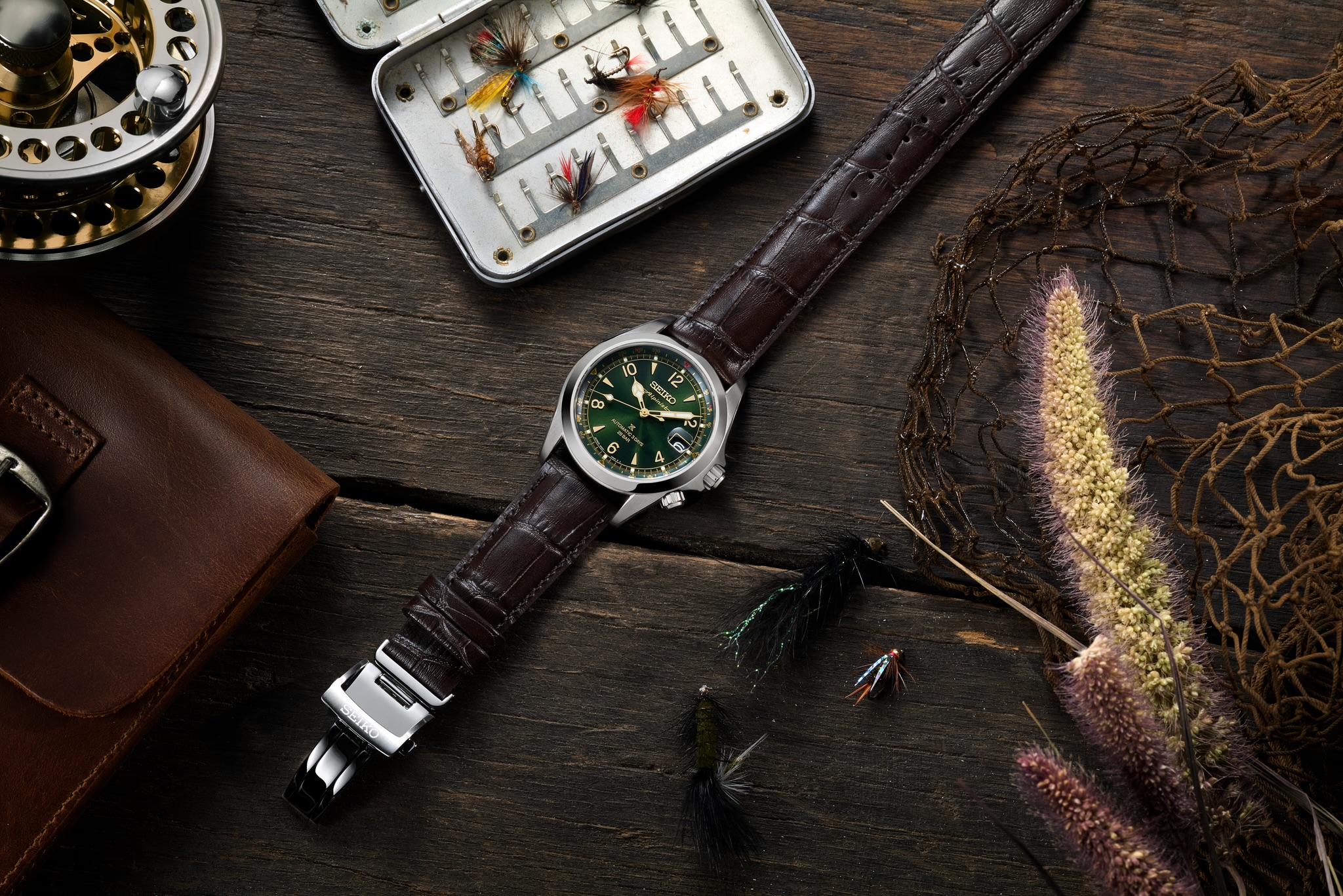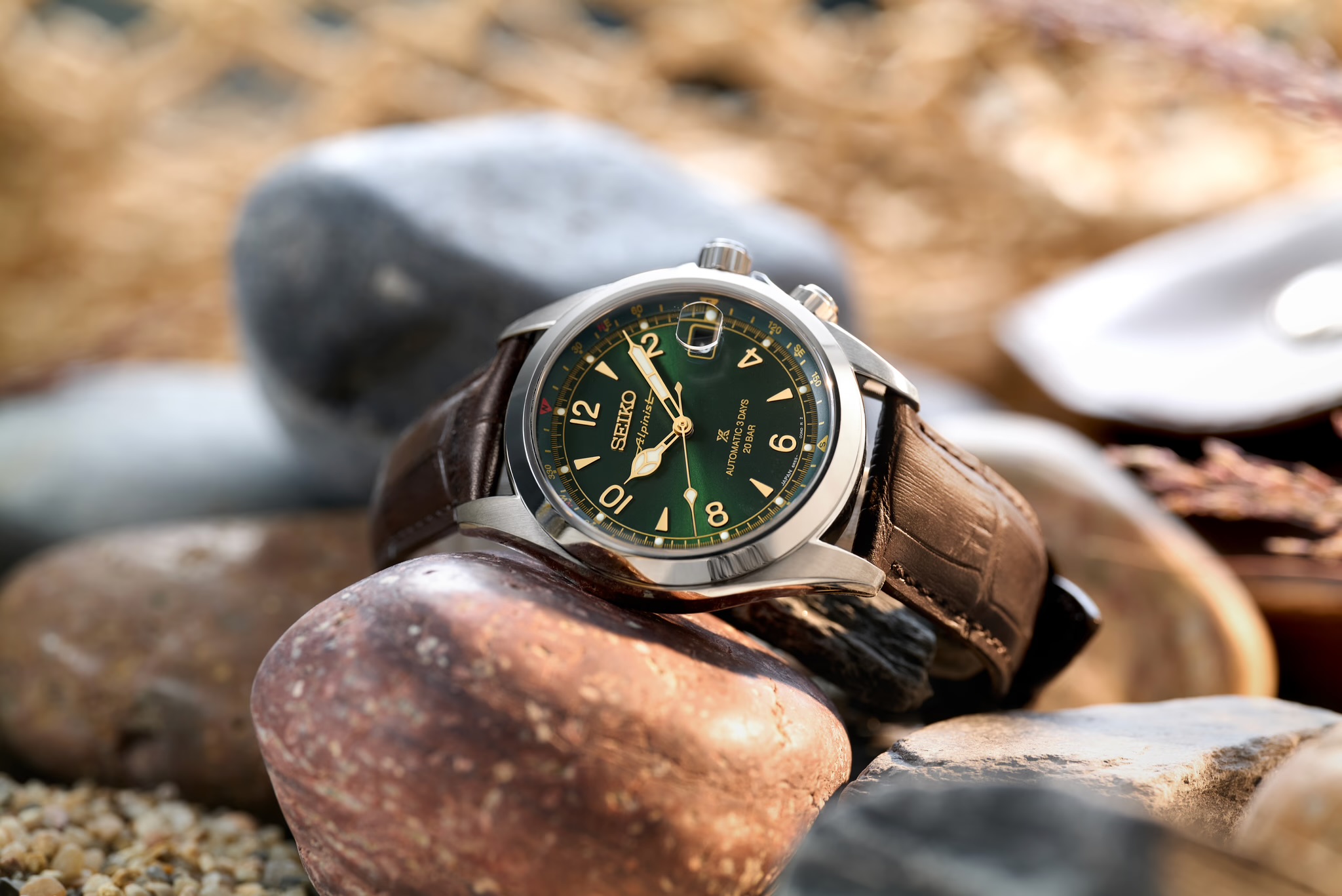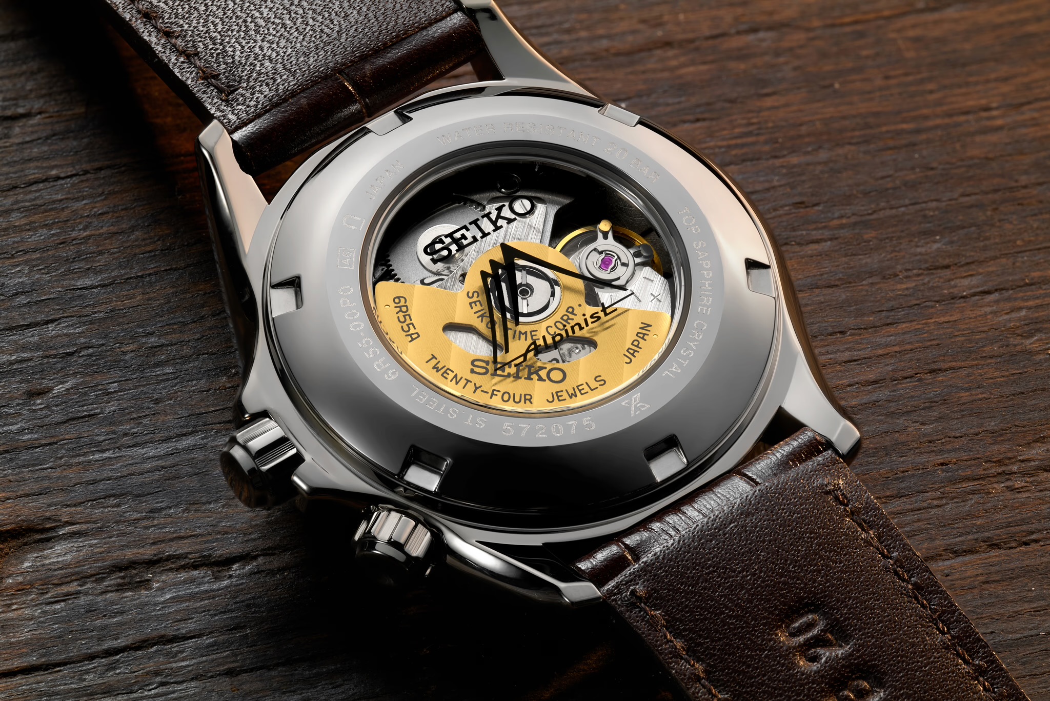 Seiko heeft zojuist de Alpinist voorzien van een update. Horloge lijkt meer op de Sarb017 Alpinist. Prospex logo is kleiner geworden. Nu voorzien van de tekst Alpinist op de wijzerplaat. Zwart datum venster net zoals de Sarb017. Meer gilt accenten nu ook op de compass ring. Inhouse Seiko 6R55 uurwerk met 72 uur power reserve. Nu met goudkleurige rotor, helaas wel met lelijke sticker op de display caseback. 200 meter water resistant. Case 39,5mm.