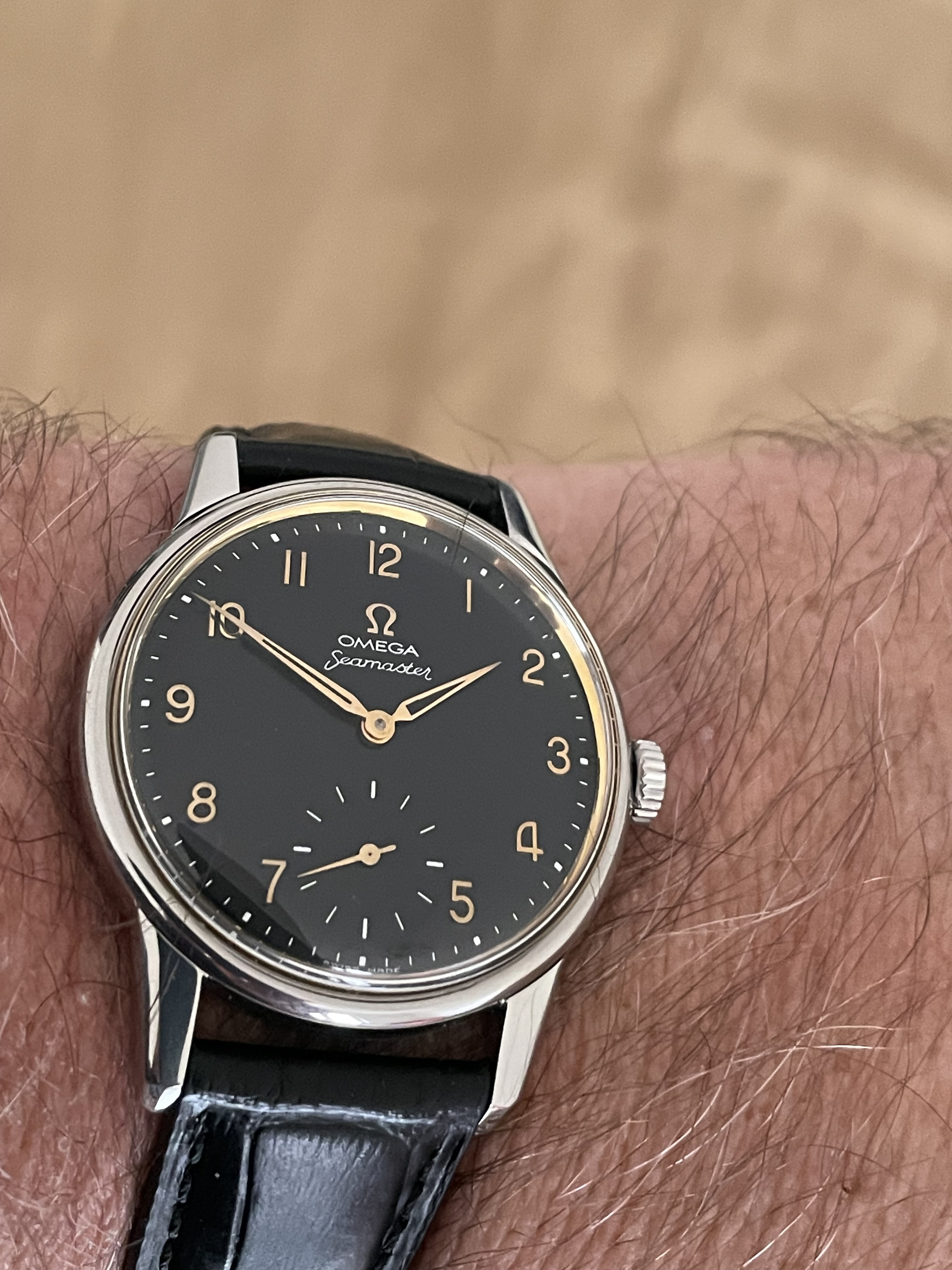 En dan heb ikzelf een omega seamaster uit 1960 gekocht die helemaal naar nieuw is hersteld en recent service heeft ondergaan,movement is origineel in-house caliber 268,daar heb ik nog jaren plezier van,dit is voor mij ook vintage,zonder krassen of mankementen,mint conditie,ben geen waarde vintage verzamelaar,maar liefhebber,de kleine diameter van 35 mm vindt ik wel te klein.