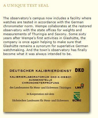 P.S. Het Chronometer teststation is er al sinds 14 Juli 2006. Overigens, net zoals de top*-Zwitserse merken niet aan COSC doen, geldt dat in Glashütte ook voor ALS en GO.