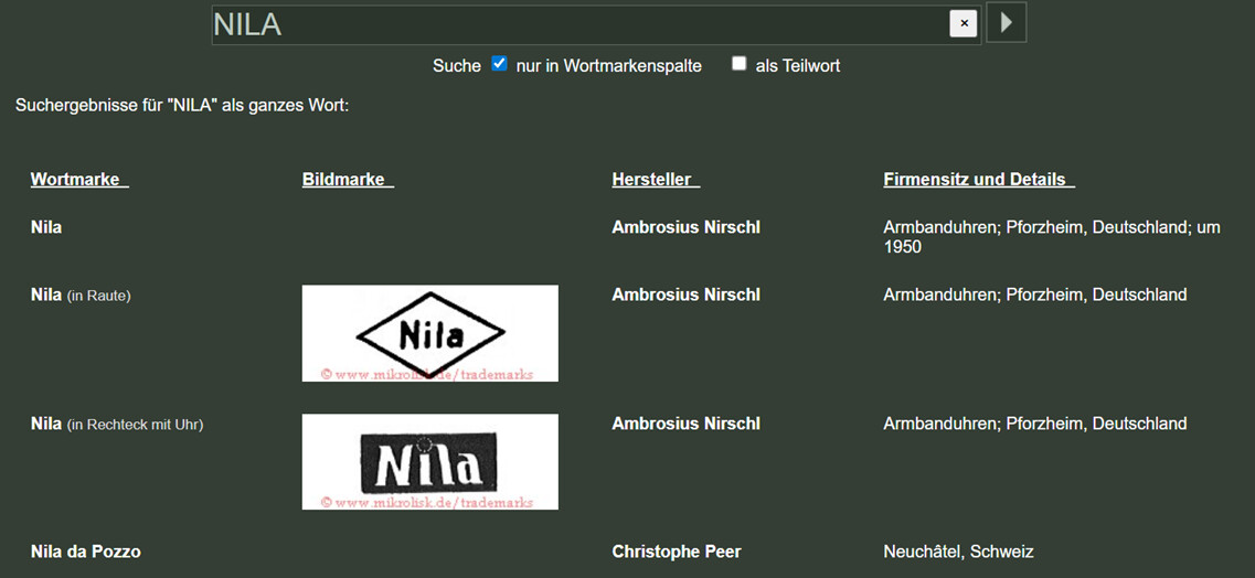 Het merkje was al snel teruggevonden in de naar mijn menig nog steeds onvolprezen database van Dr. Andreas Schröter. Voordat ik verder ga over het Nila horloge, eerst even iets over :