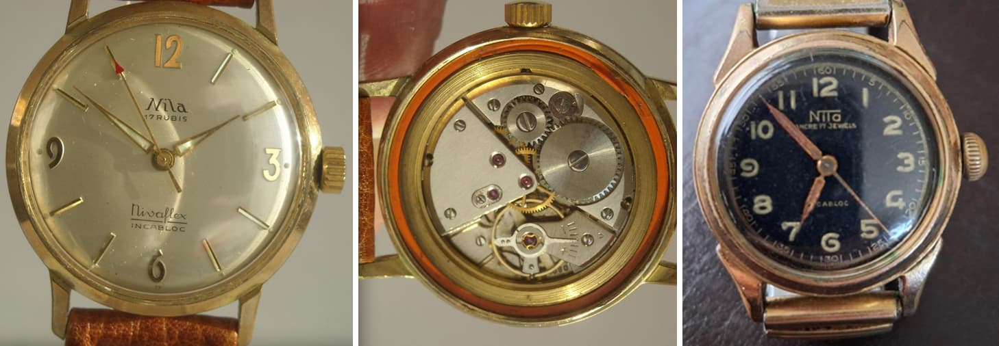 Daarmee heb ik toch nog een paar Nila’s gevonden op het web. De linkse op Etsy en de andere twee op eBay. Alle drie veel te duur naar mijn idee… dik over de € 100,-- met alle bijkomende kosten. En geen info over of afbeeldingen van het uurwerk.