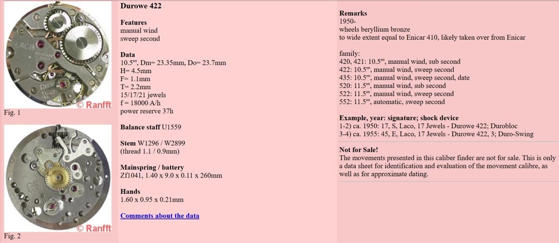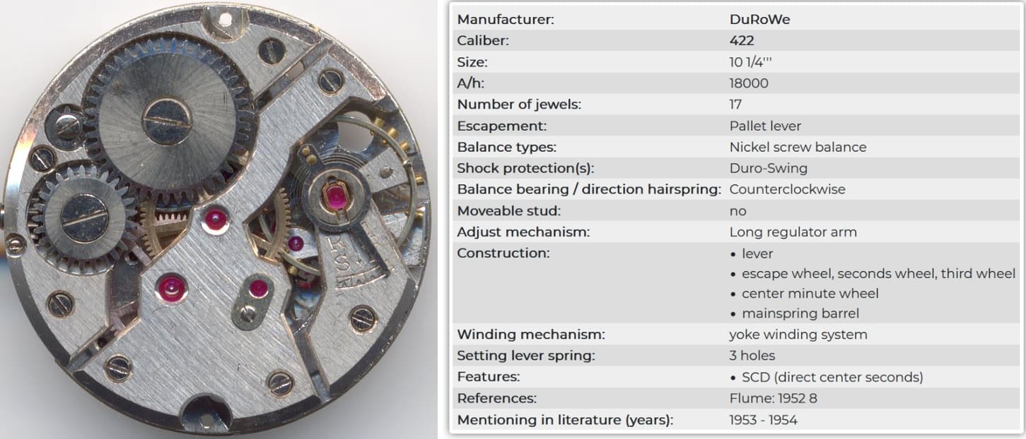 Surprise, surprise! Er is een DuRoWe 422. (Deutsche RohWerke / Laco). Ik vond niet slechts een macht op dat nummer 422, het is hetzelfde uurwerk. Kijk maar:
