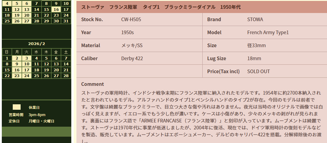 Een Japanse site, met de prachtige naam: ストーヴァ フランス陸軍 タイプ1 ブラックミラーダイアル 1950年代 - VINTAGE WATCH - Curious Curio(キュリオスキュリオ)