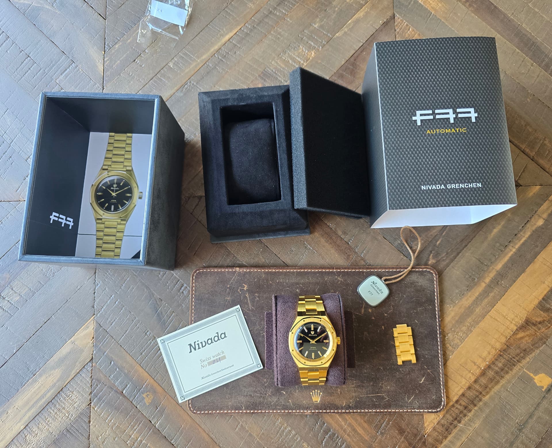 Factuur en/of certificaat: full set. Extra schakels, tag doos en omdoos aanwezig + garantiekaart.