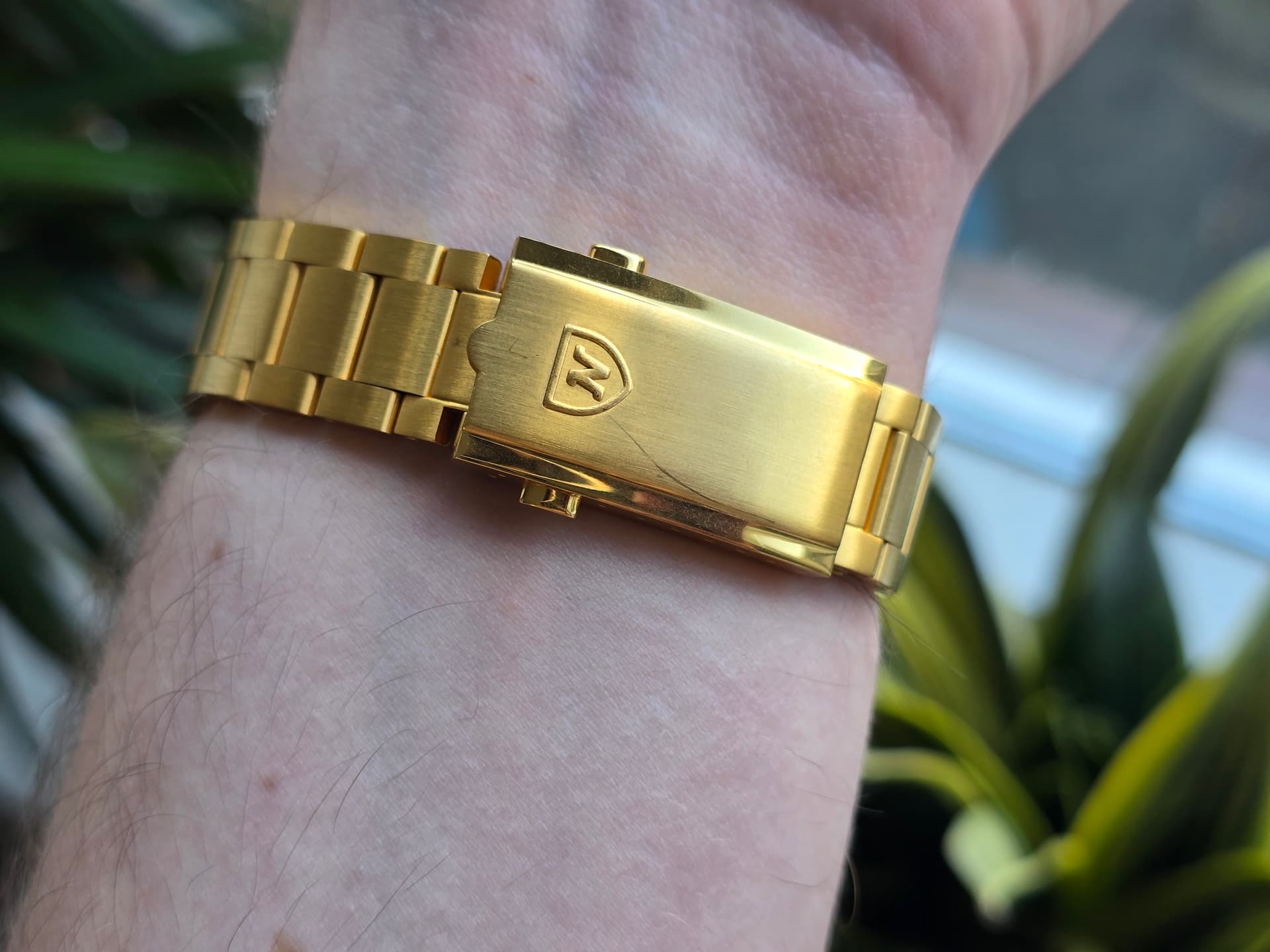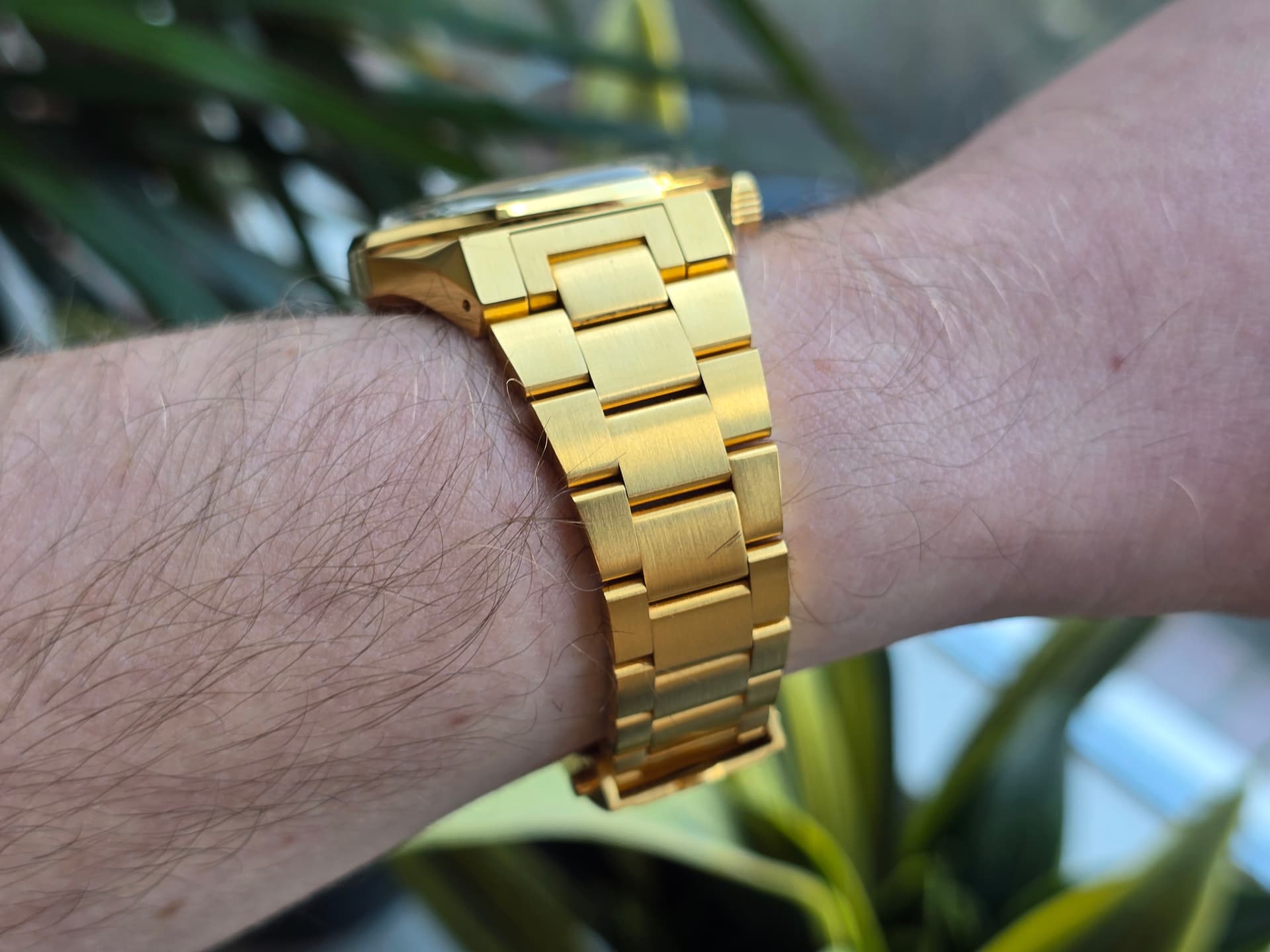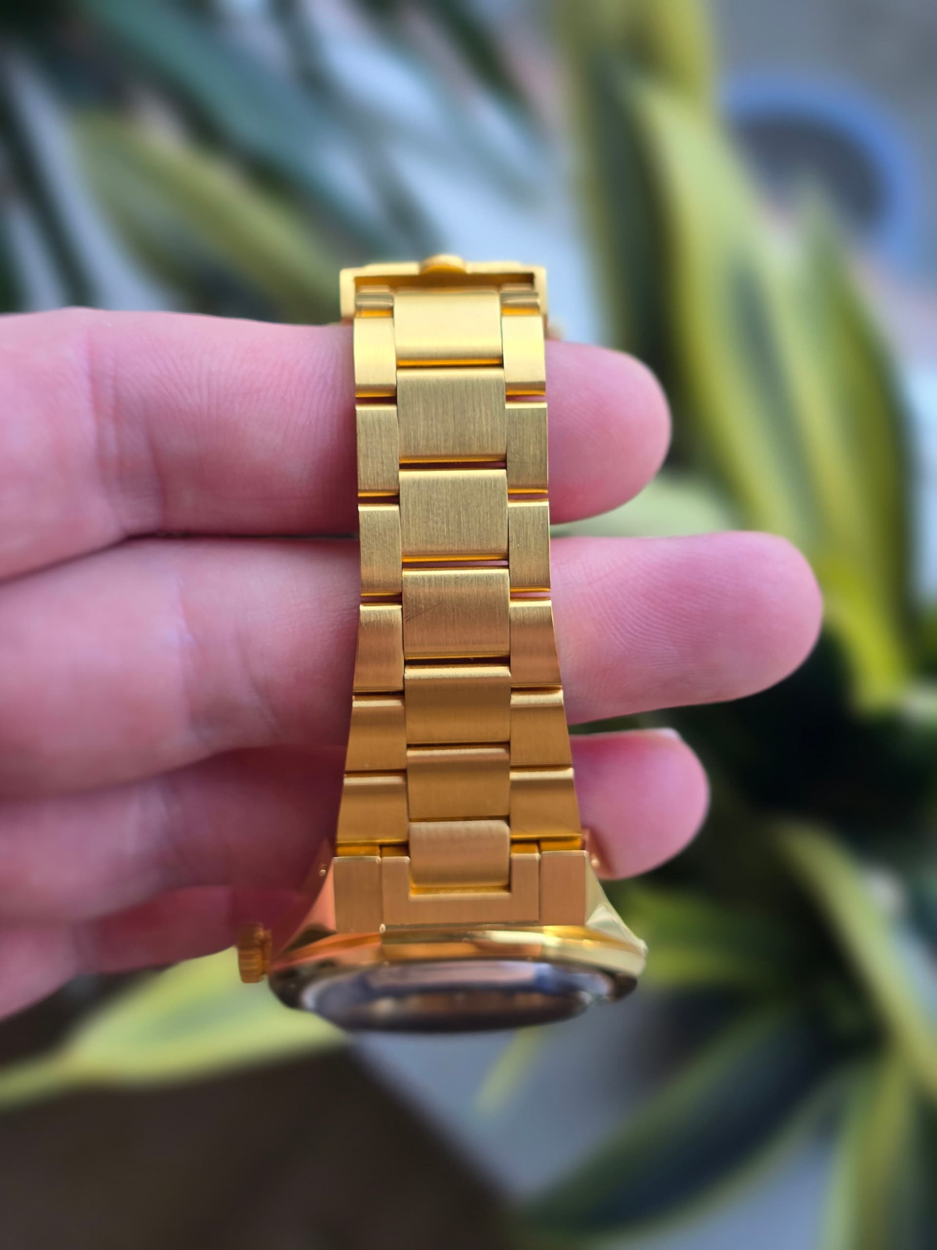 Conditie (krassen, werking etc): lichte gebruikssporen op de band en deskdive sporen op de clasp. Kast is krasvrij. Zeer nette conditie.