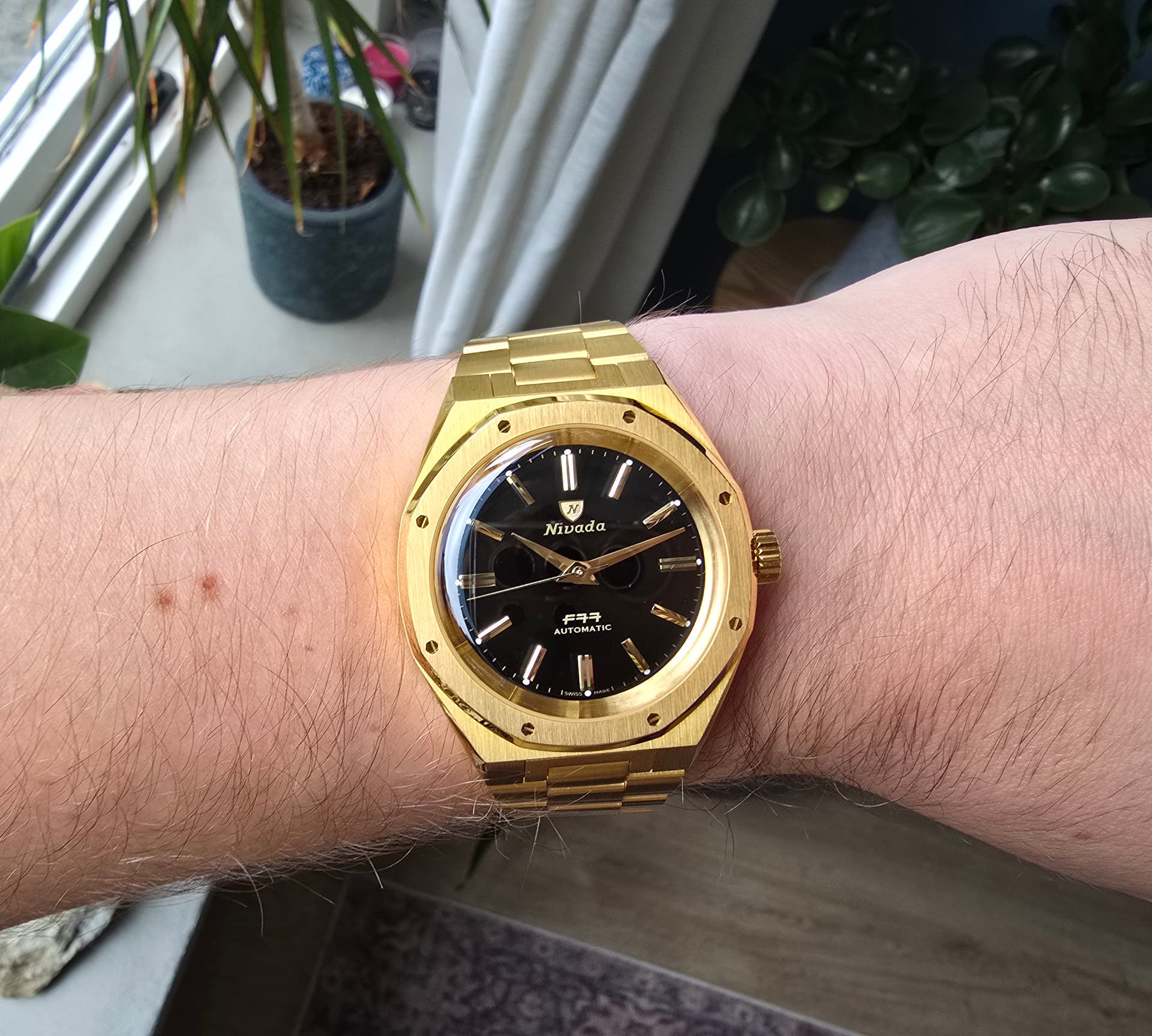 Mijn Nivada F77 MK11 met onyx dial in een 18kt gold plated laagje