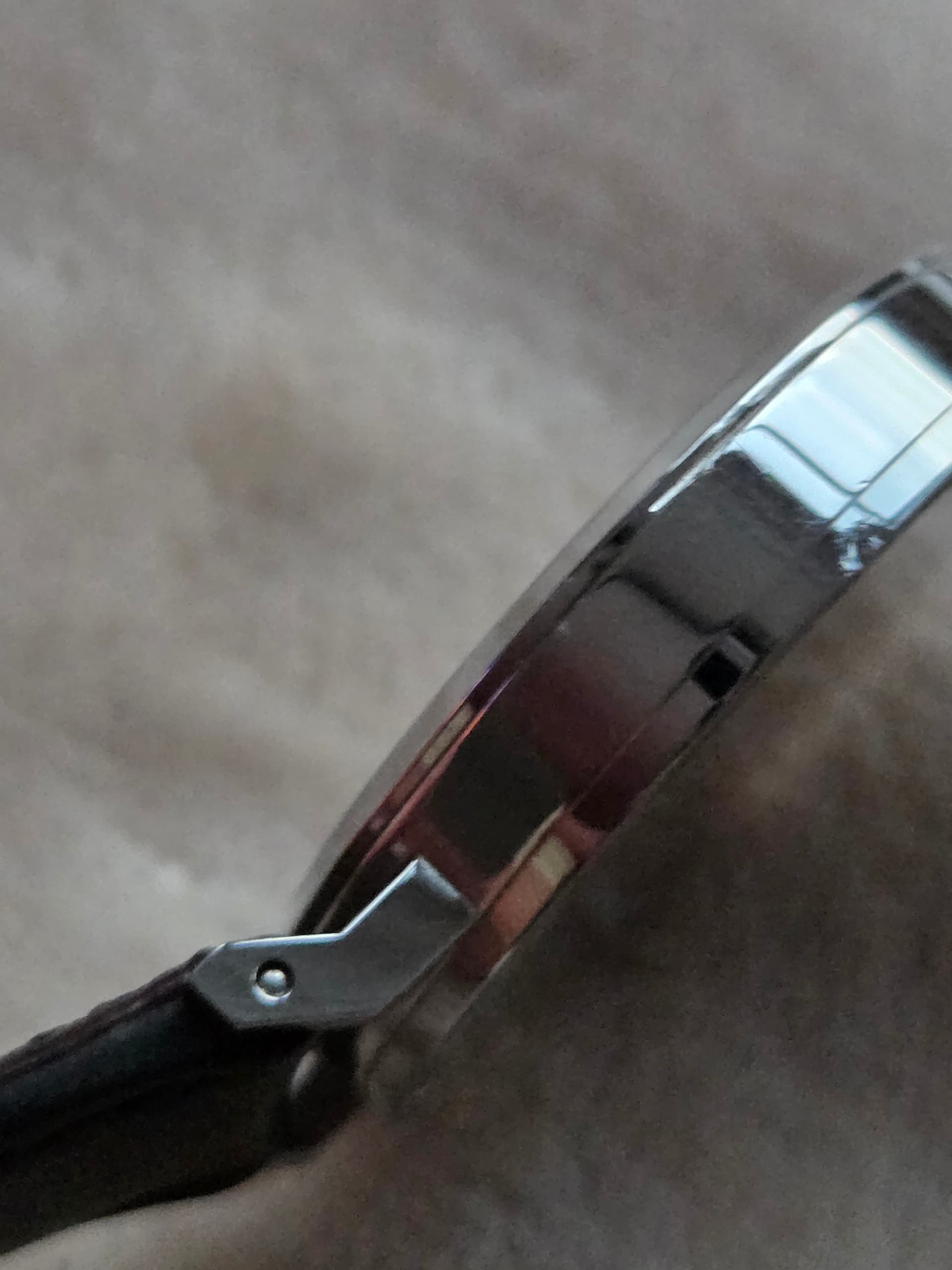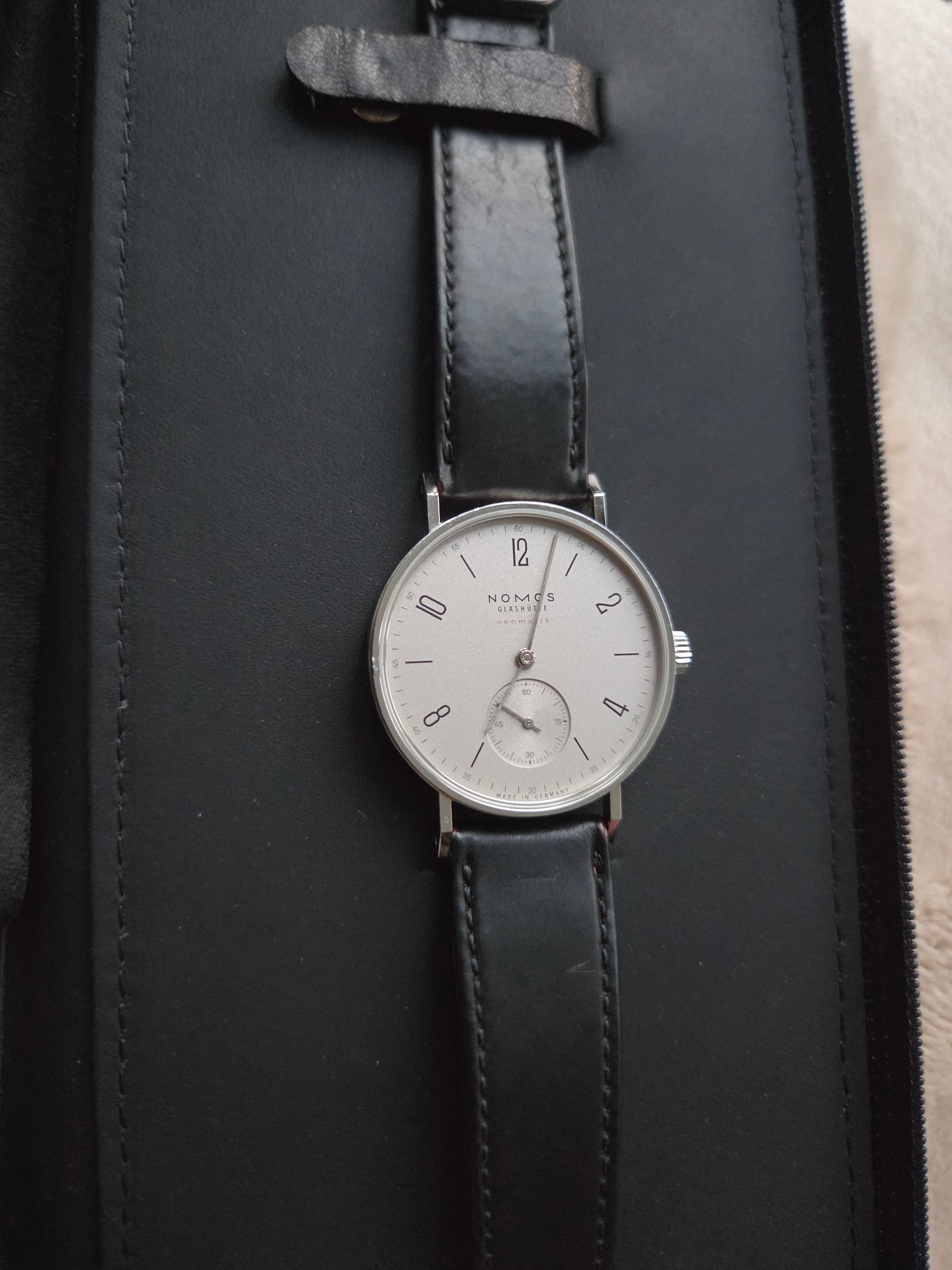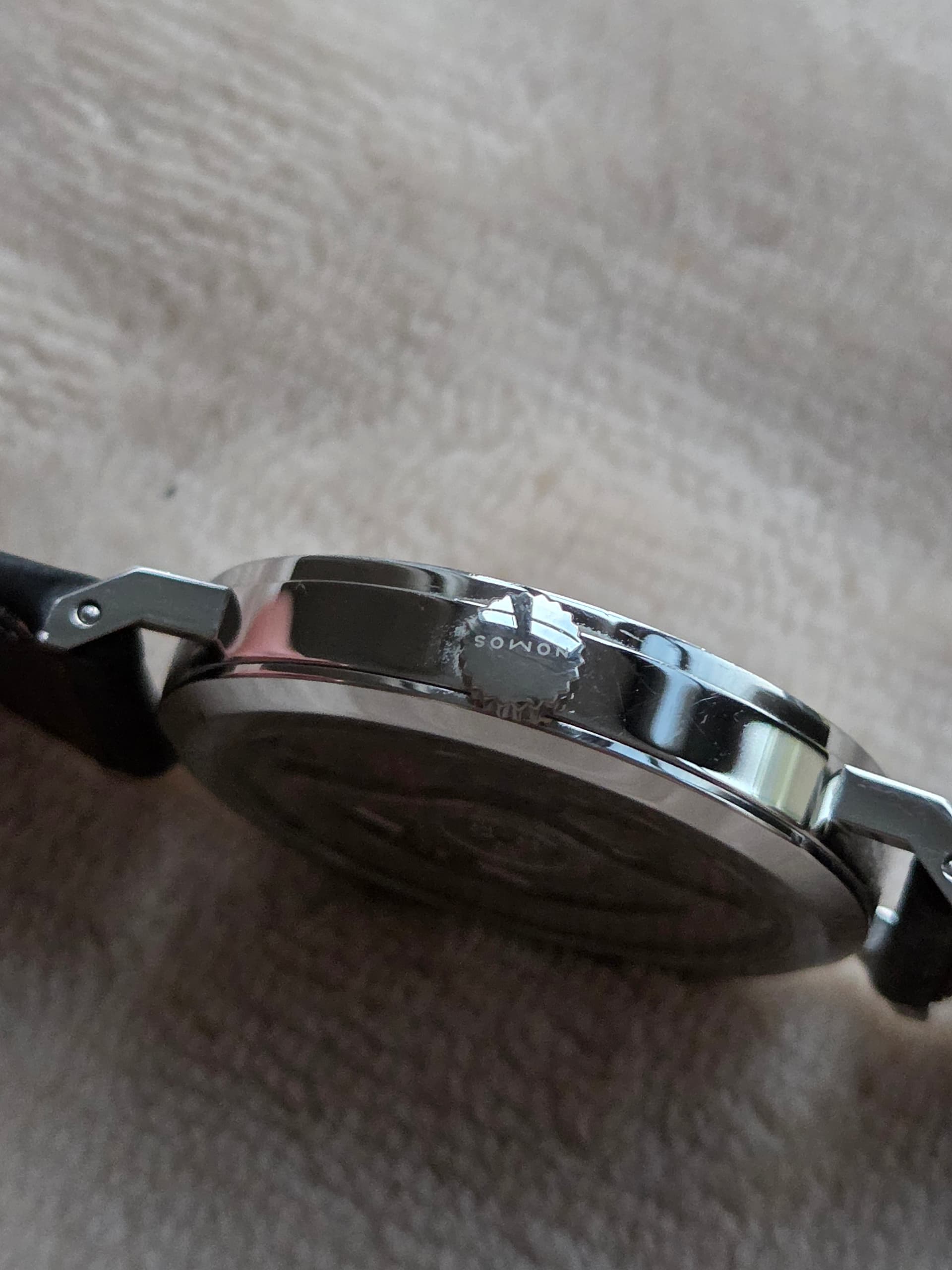 Zeer fraaie Nomos met een wijzerplaat voorzien van rhodium. Van under the radar naar spetterend in zonlicht. Het horloge past bij elke gelegenheid door het formaat, gebruikte materialen en design.