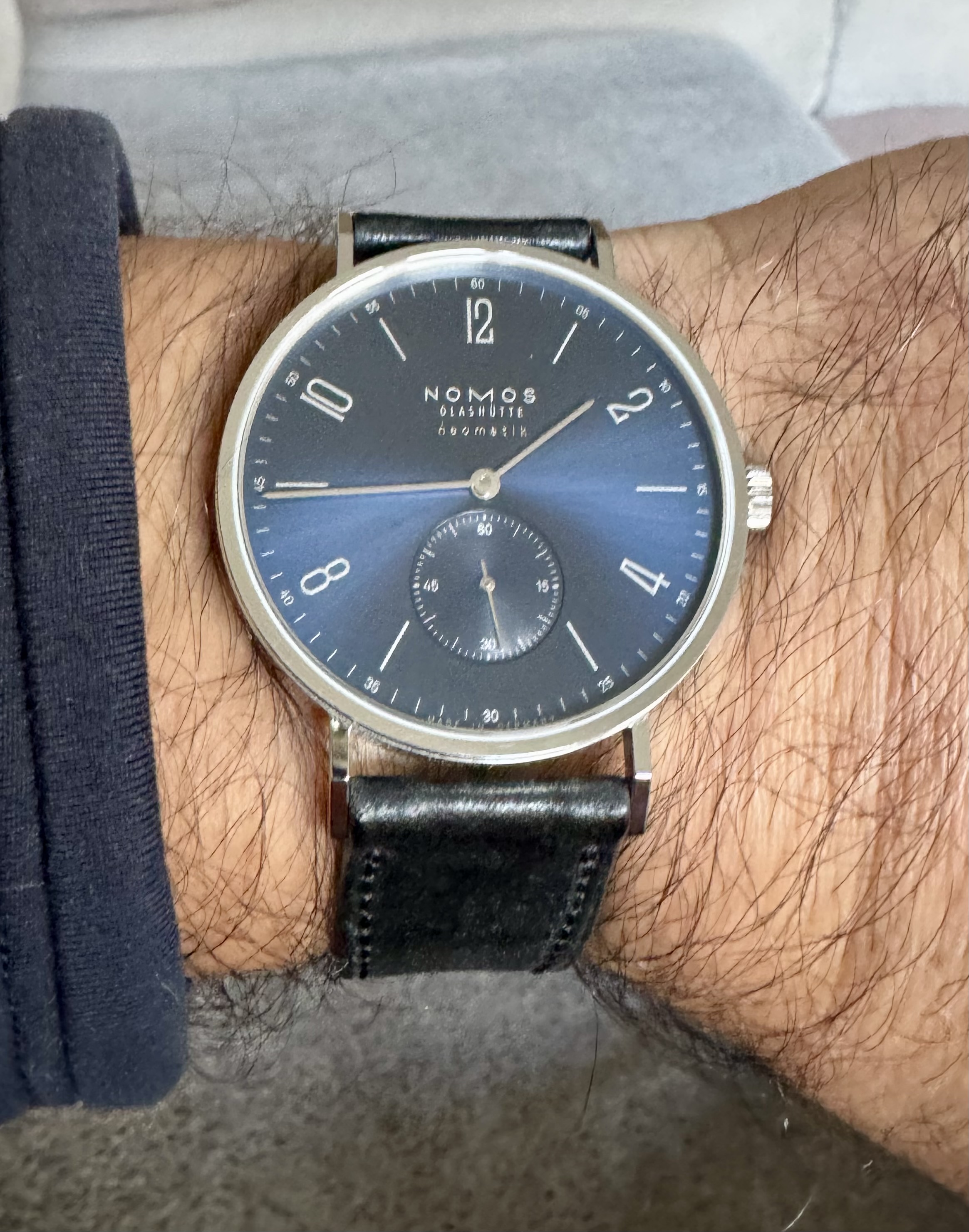 Mijn oog was al een tijdje gevallen op Nomos. Op zoek naar mijn “voorkeur”, bleef ik iedere keer terugkomen bij de Nomos. Het rustige design werkt voor mij. In eerste instantie dacht ik dat een blauwe versie het zou worden. Omdat ik hem alleen nog maar online gezien had, gisteren op zoek naar een juwelier waar ik zou kunnen kijken of het überhaupt zou staan op mijn pols. Juwelier gevonden in Alkmaar. Naar binnen, kopje koffie. Nomos om de pols.