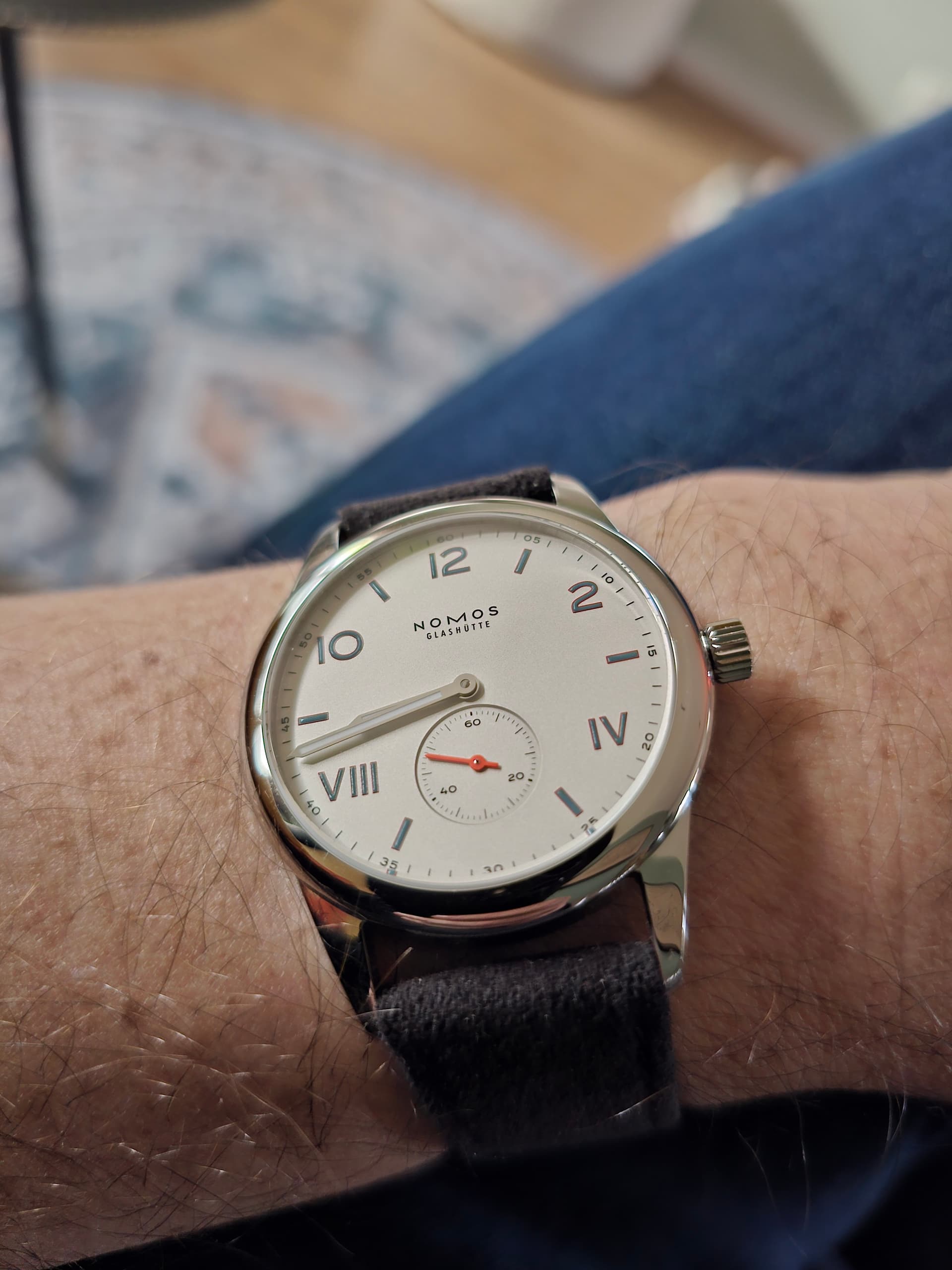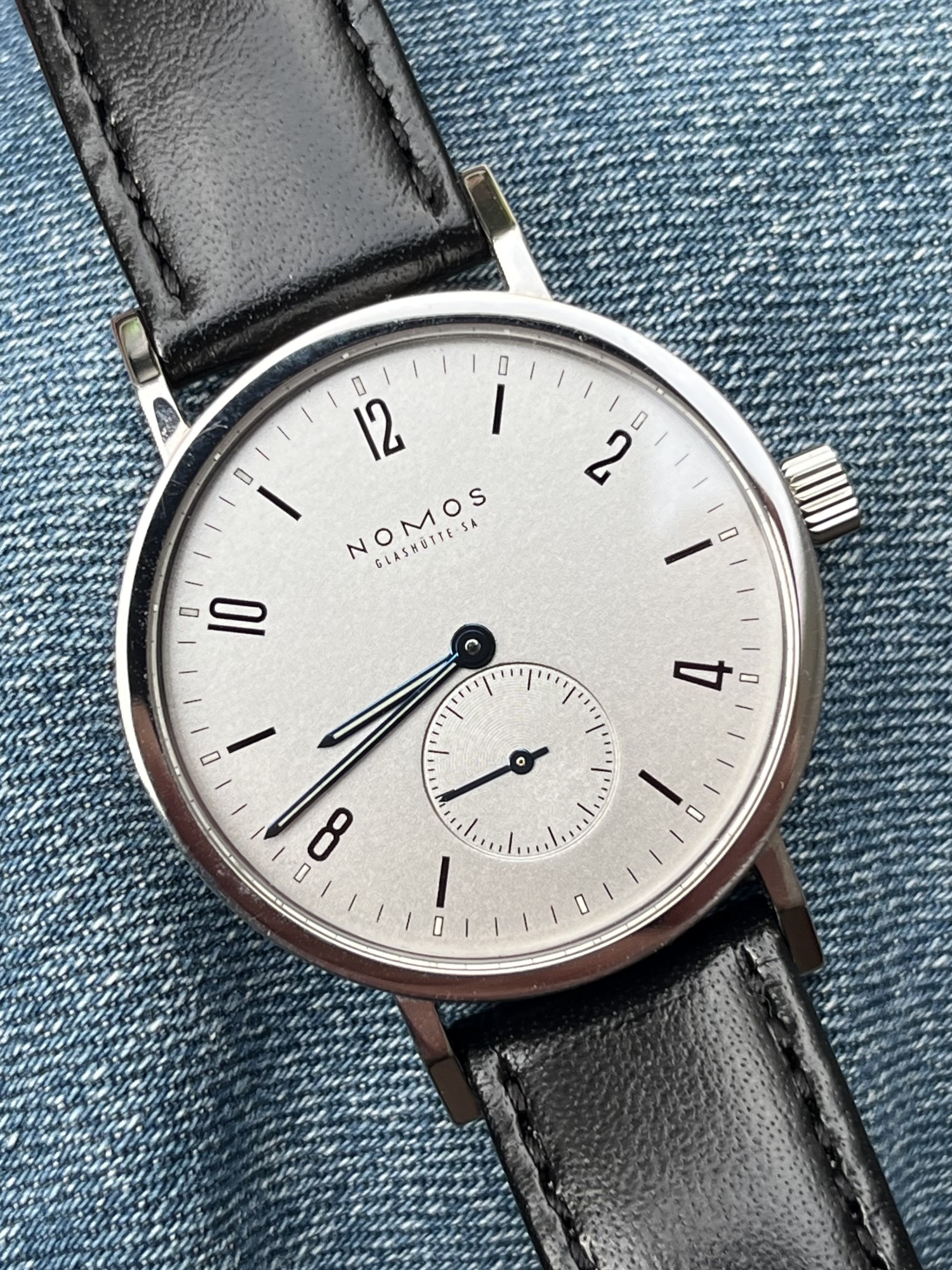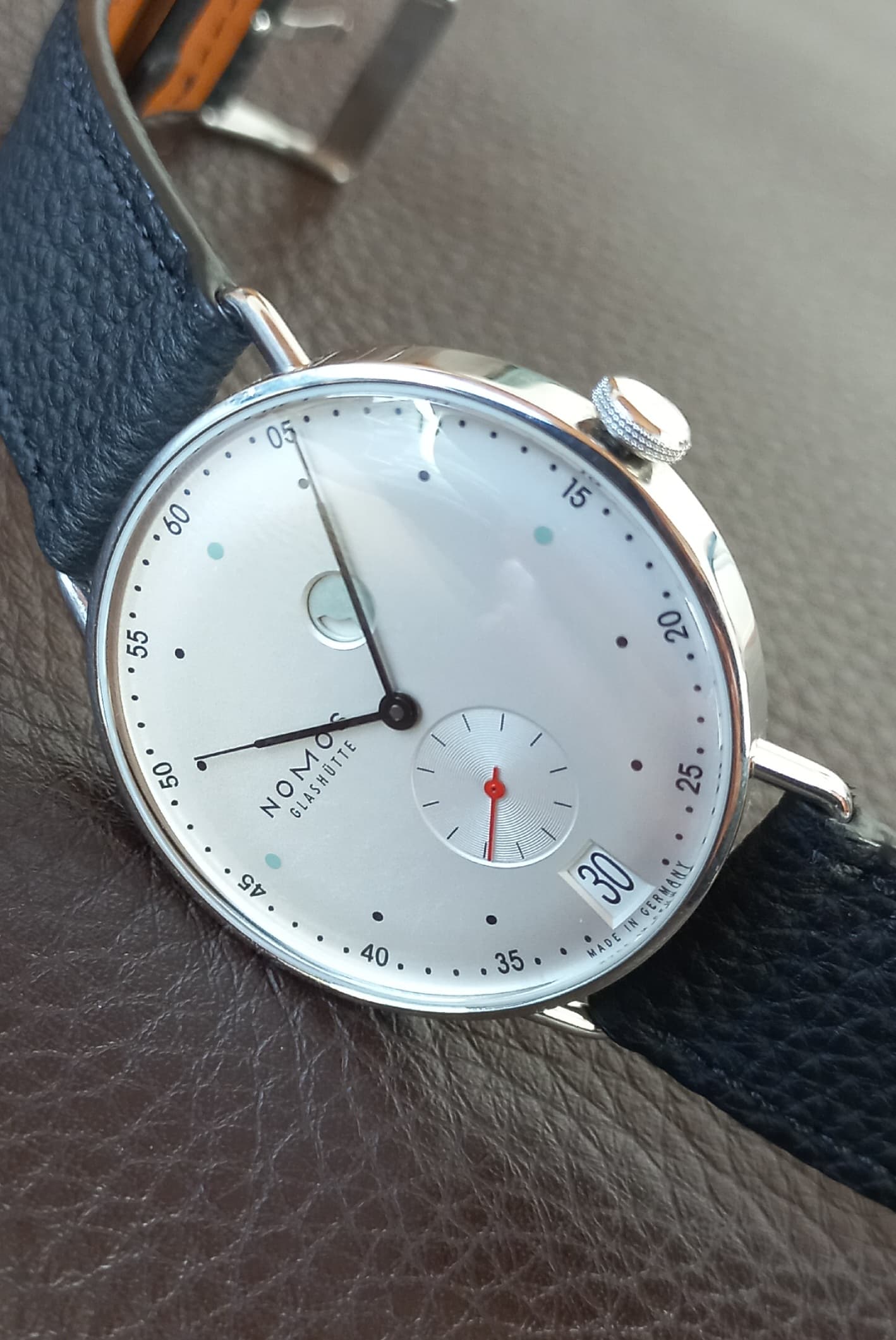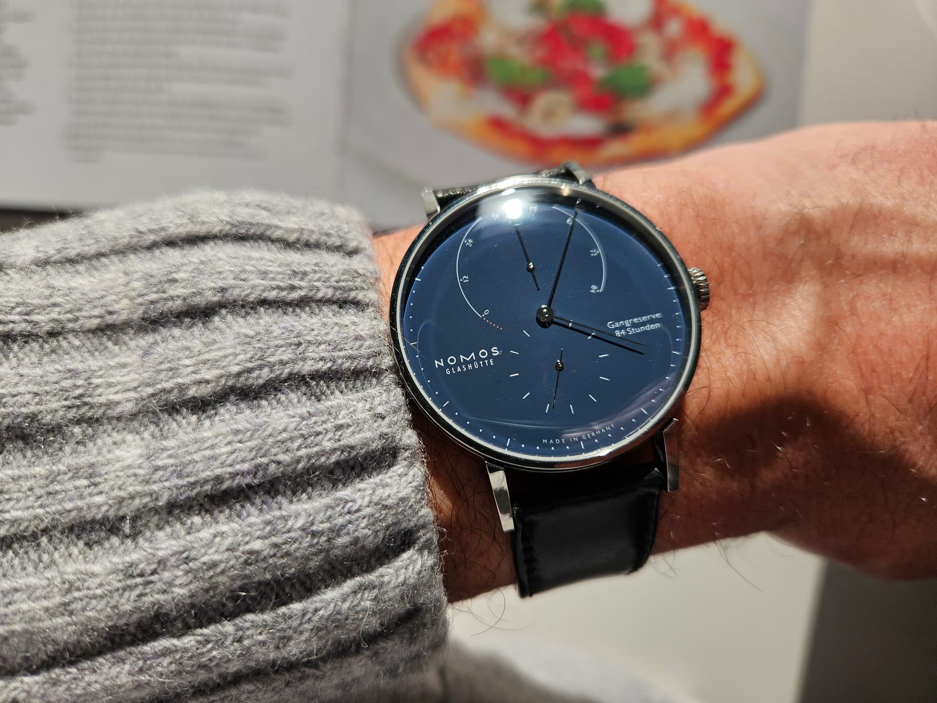 Mijn oog was al een tijdje gevallen op Nomos. Op zoek naar mijn “voorkeur”, bleef ik iedere keer terugkomen bij de Nomos. Het rustige design werkt voor mij. In eerste instantie dacht ik dat een blauwe versie het zou worden. Omdat ik hem alleen nog maar online gezien had, gisteren op zoek naar een juwelier waar ik zou kunnen kijken of het überhaupt zou staan op mijn pols. Juwelier gevonden in Alkmaar. Naar binnen, kopje koffie. Nomos om de pols.