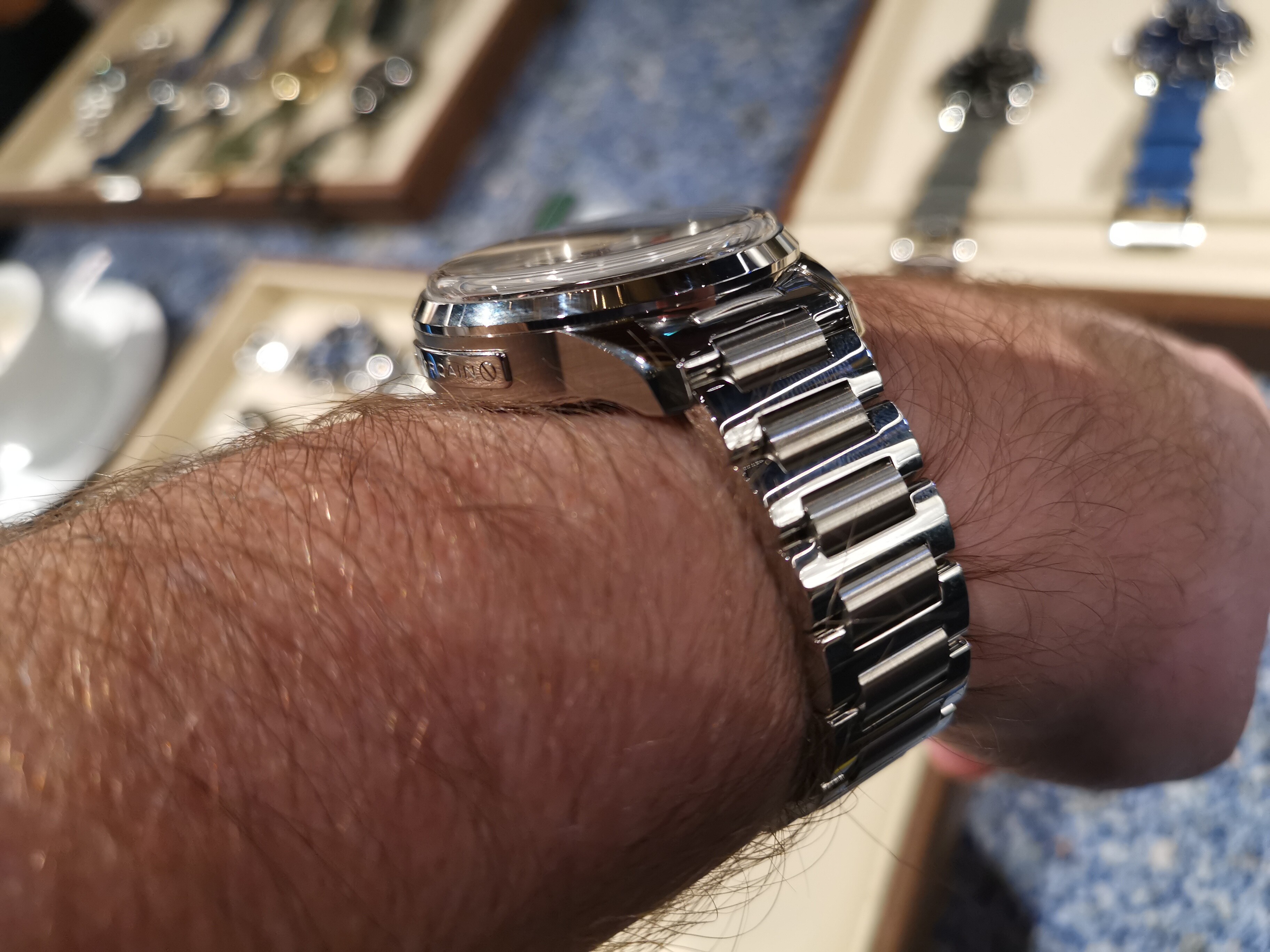 Uit pure nieuwsgierigheid een paar modellen bekeken en gepast. Er zat een two-tone GMT met groene plaat bij die ik best leuk vond. Maar voor de prijzen die ze ervoor vragen zou mijn keuze eerder naar bijvoorbeeld een Tudor gaan, of iets bijleggen en dan heb je al een Omega, Zenith of Grand Seiko o.i.d.