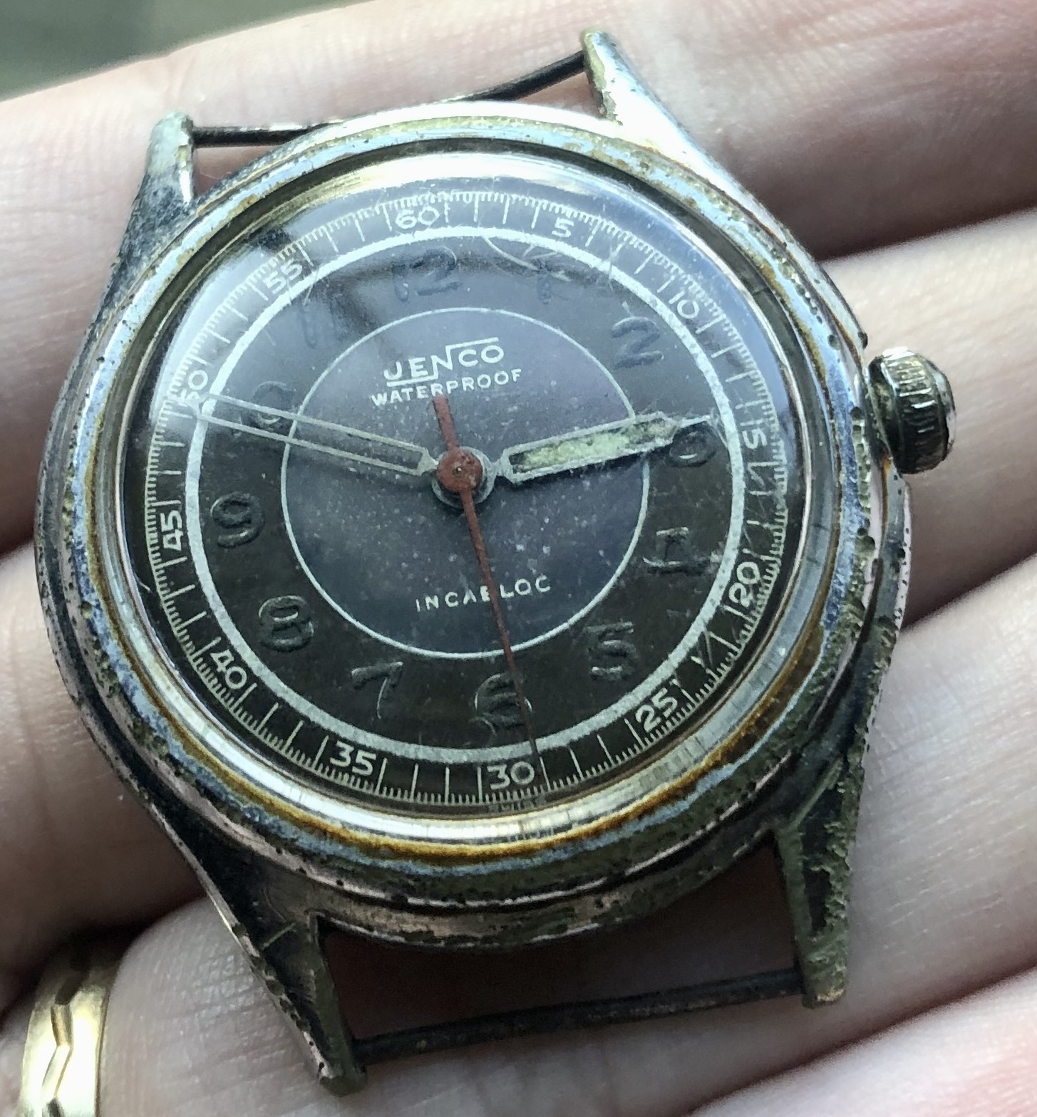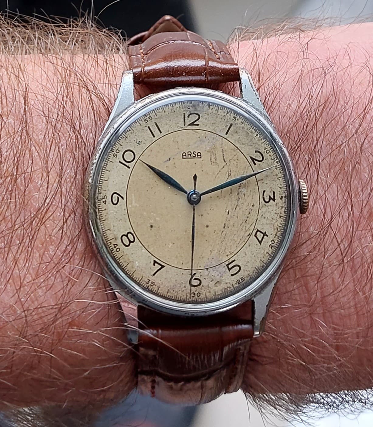 Staybrite kast en een emaille wijzerplaat zijn natuurlijk wel goede ingrediënten om lang mooi te blijven, maar hij lijkt ook niet veel gebruikt. Echt wel een van de toppers van de collectie.
