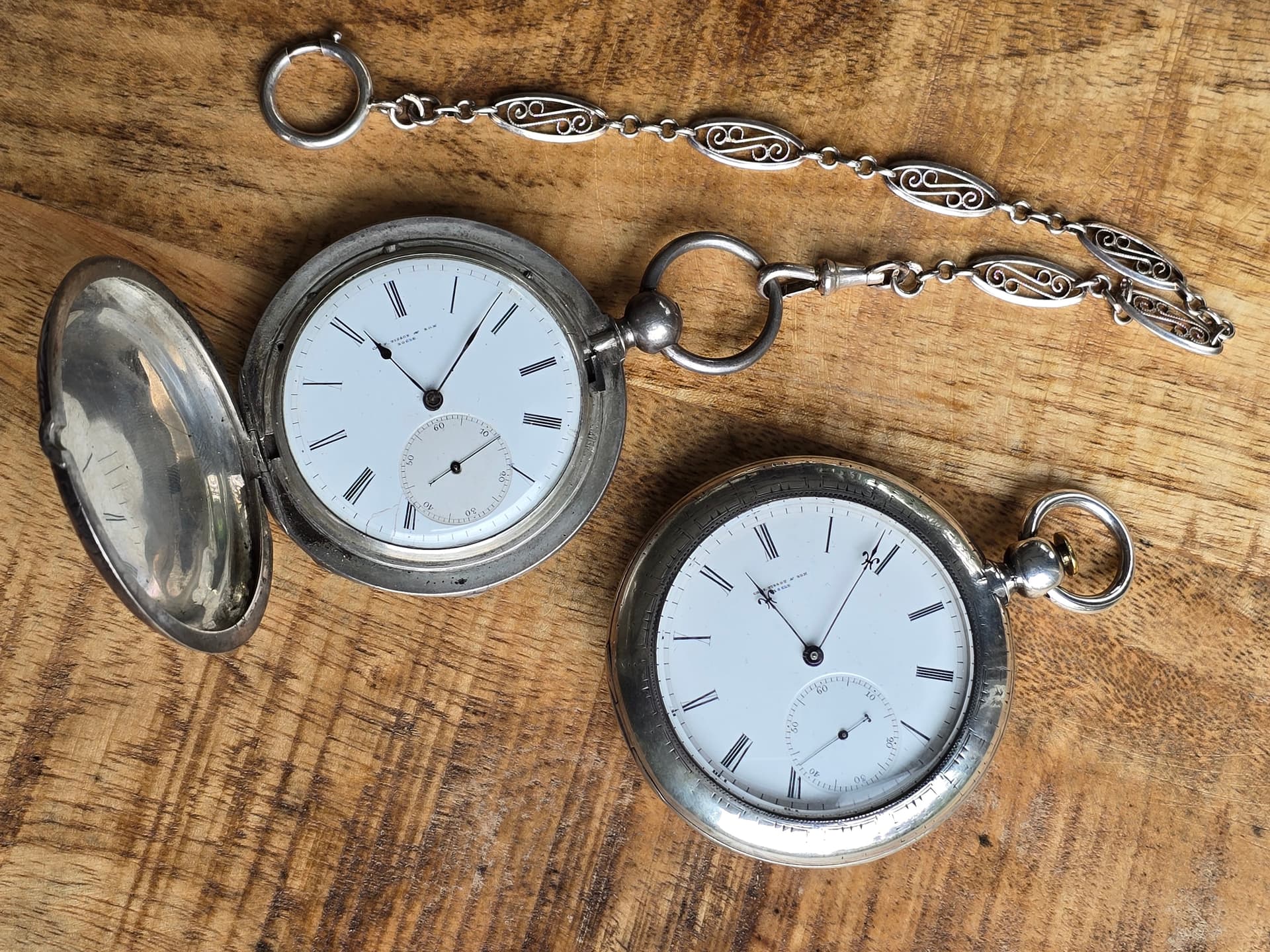 Mijn twee oudste Tissots, de linkse uit omstreeks 1857, de rechtse uit 1854: