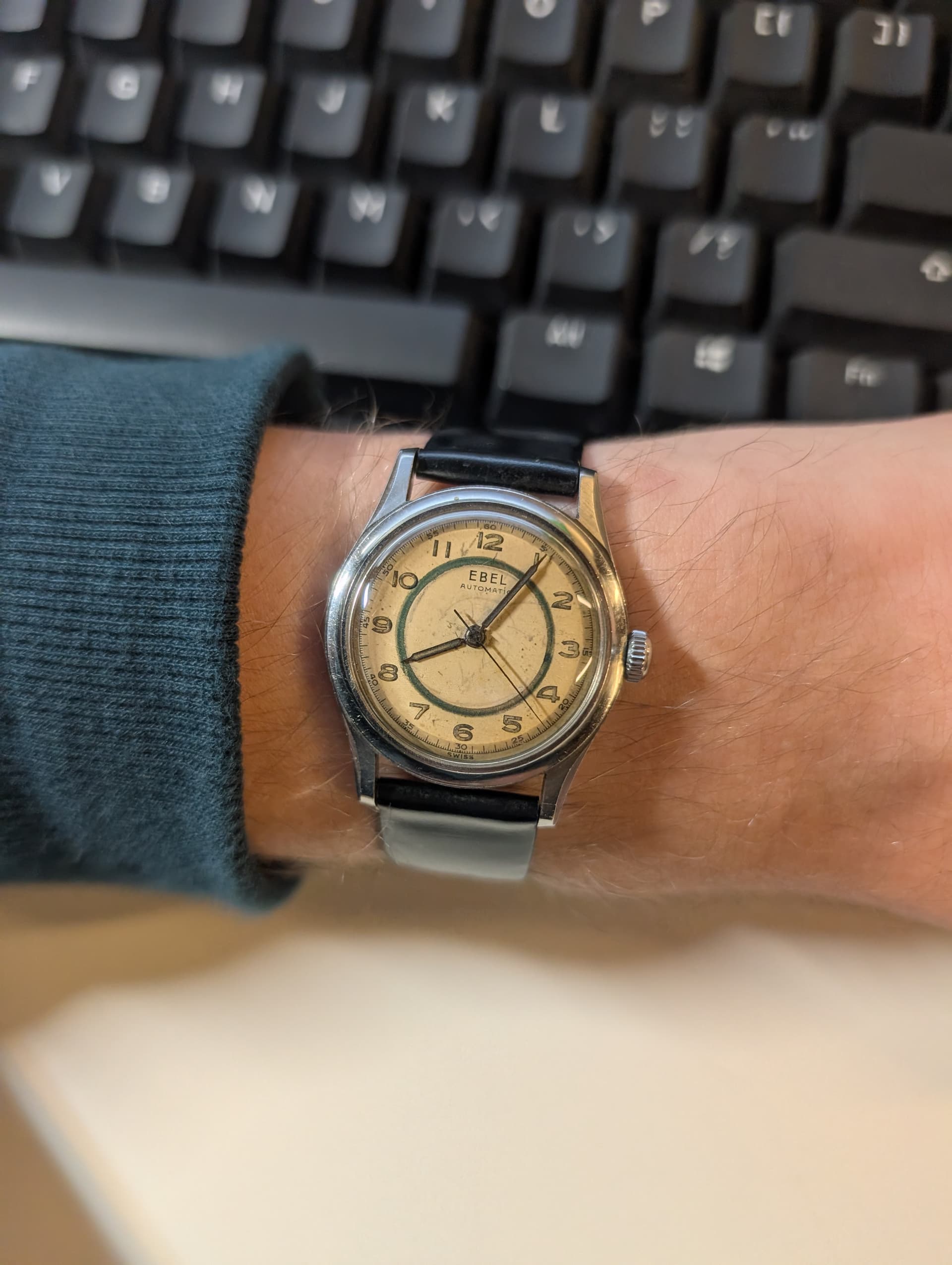 Mijn vintage ebel fields watch, vermoedelijk uit de 2de wereld oorlog. Super simpel met een super simpel uurwerk en super mooie patina.