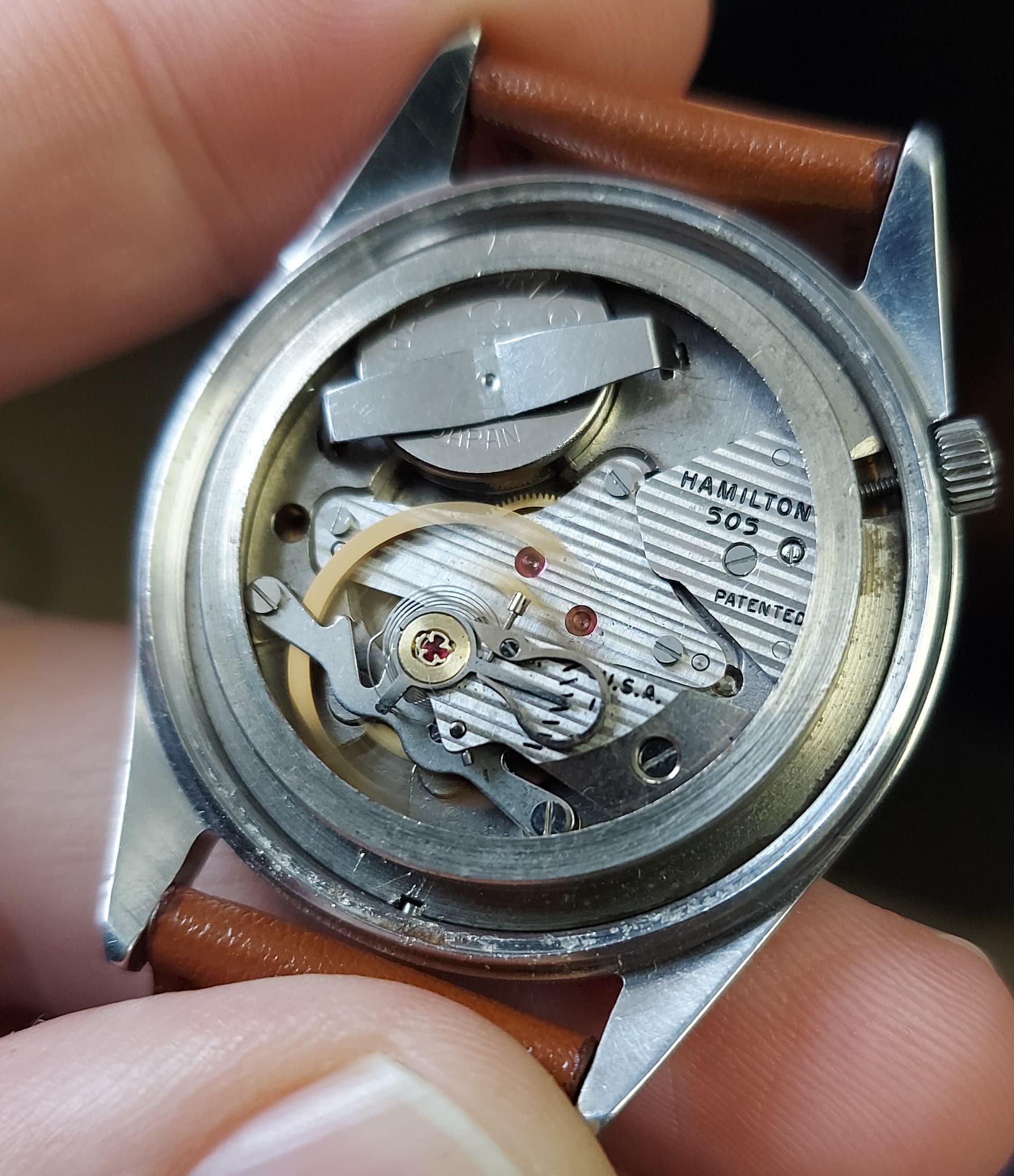 Hamilton electric. Speciale versie, daarom ook ff een plaatje van het uurwerk met zwanehals regulering.