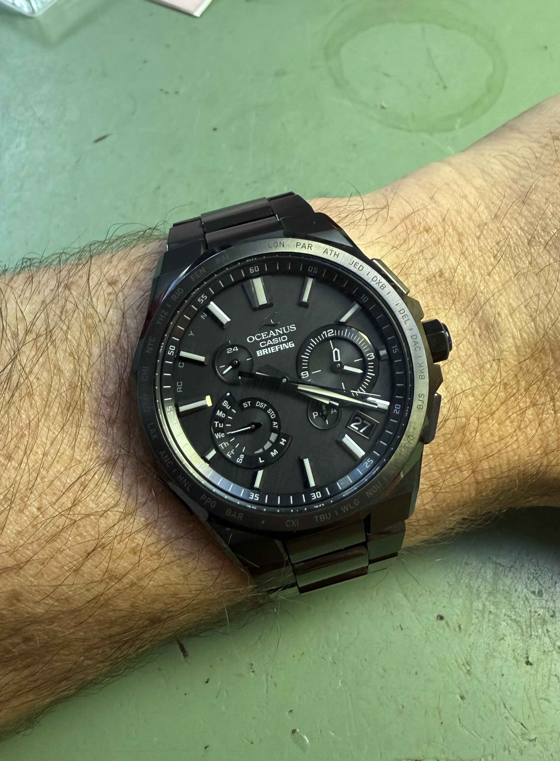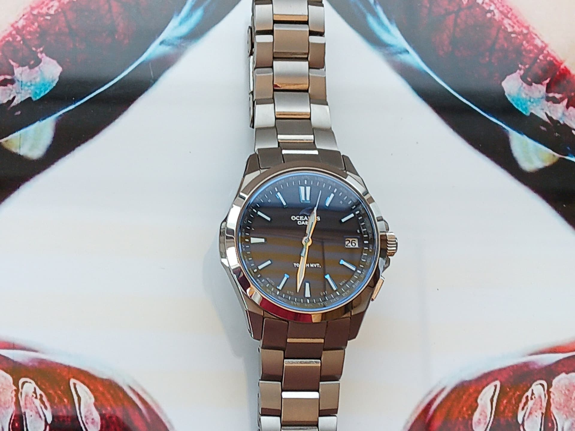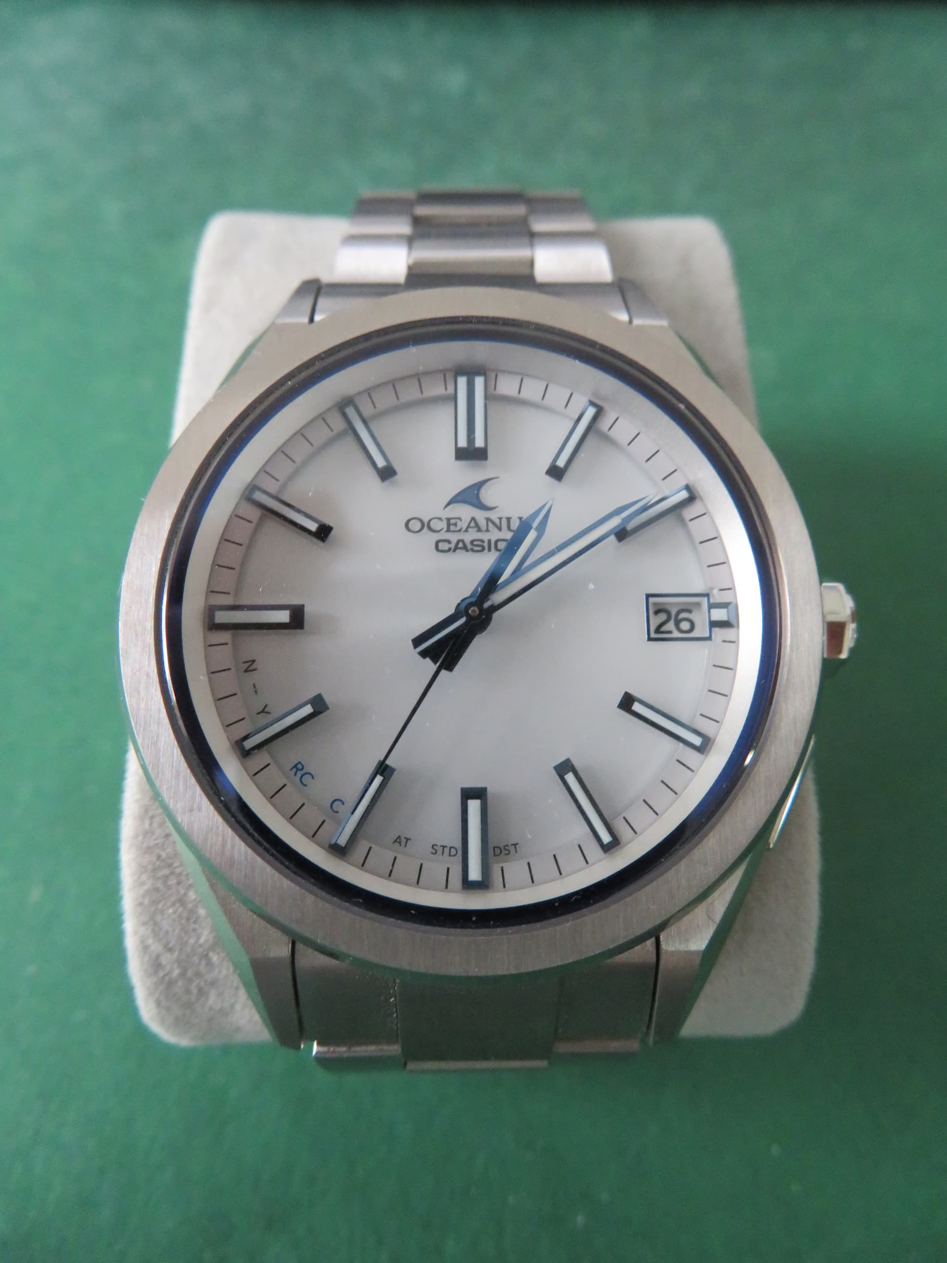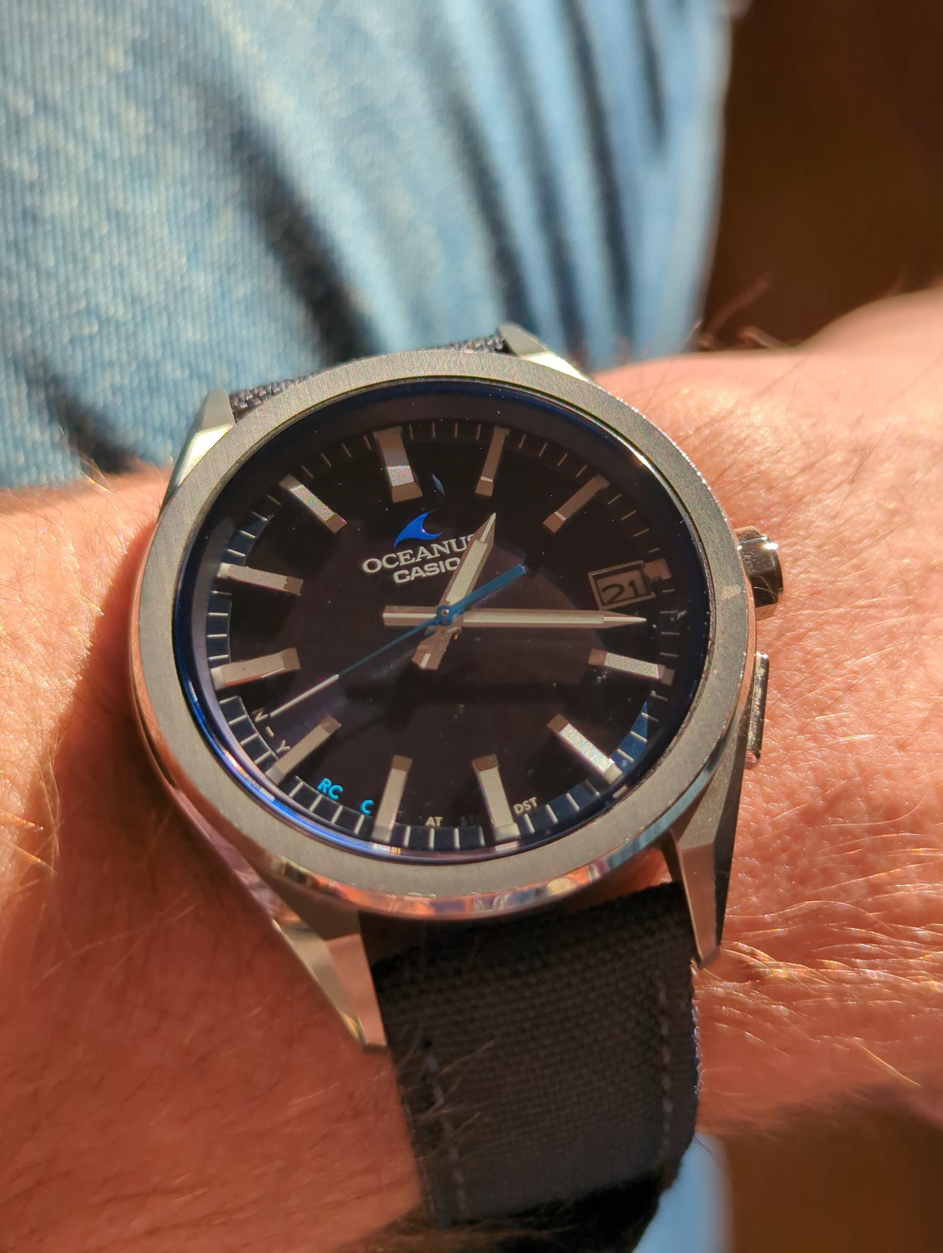 Sinds een aantal weken eigenaar van een Oceanus OCW-S6000-1AJF. Na een jaar van de witte T200 genoten te hebben, jeukte er een bonus van werk in mn zak en ben ik tot aankoop van dit, al zeg ik het zelf, prachtige horloge.