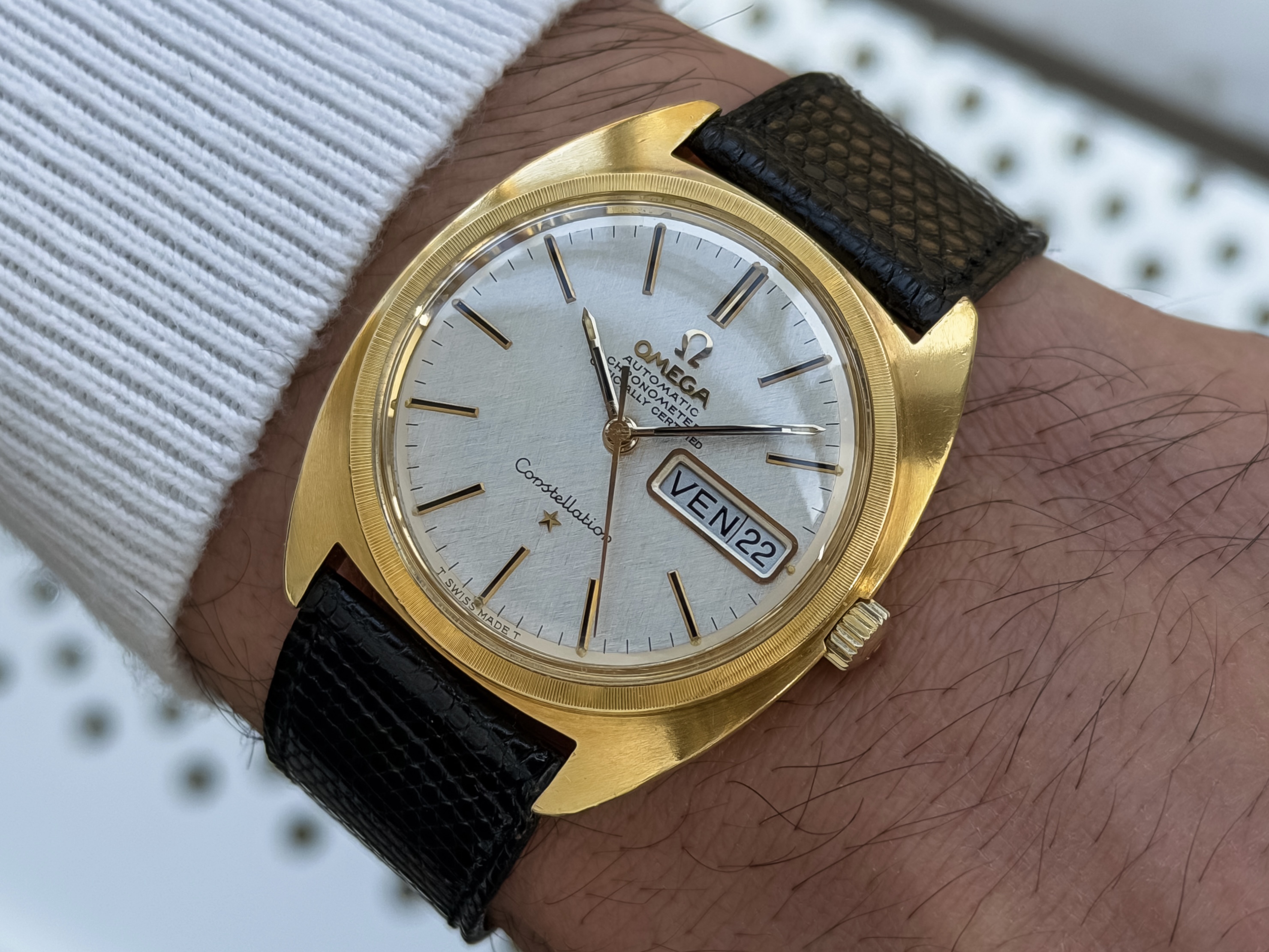 Mooie Omega Constellation Day-Date 18k goud uit 1967.