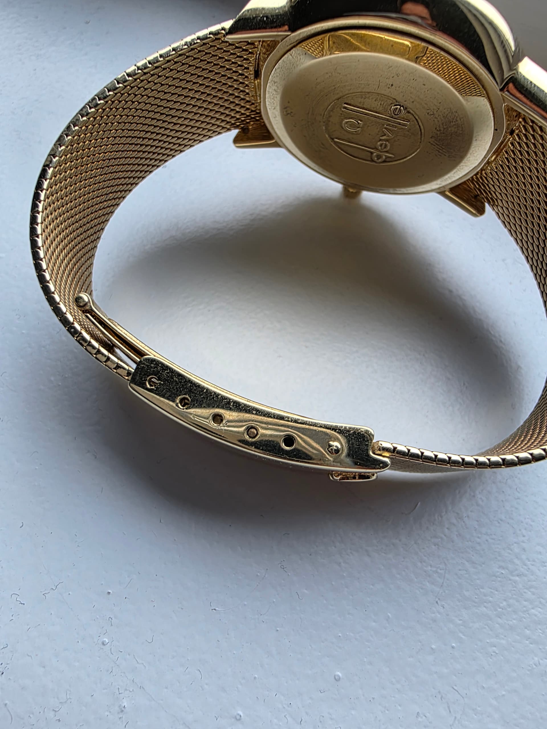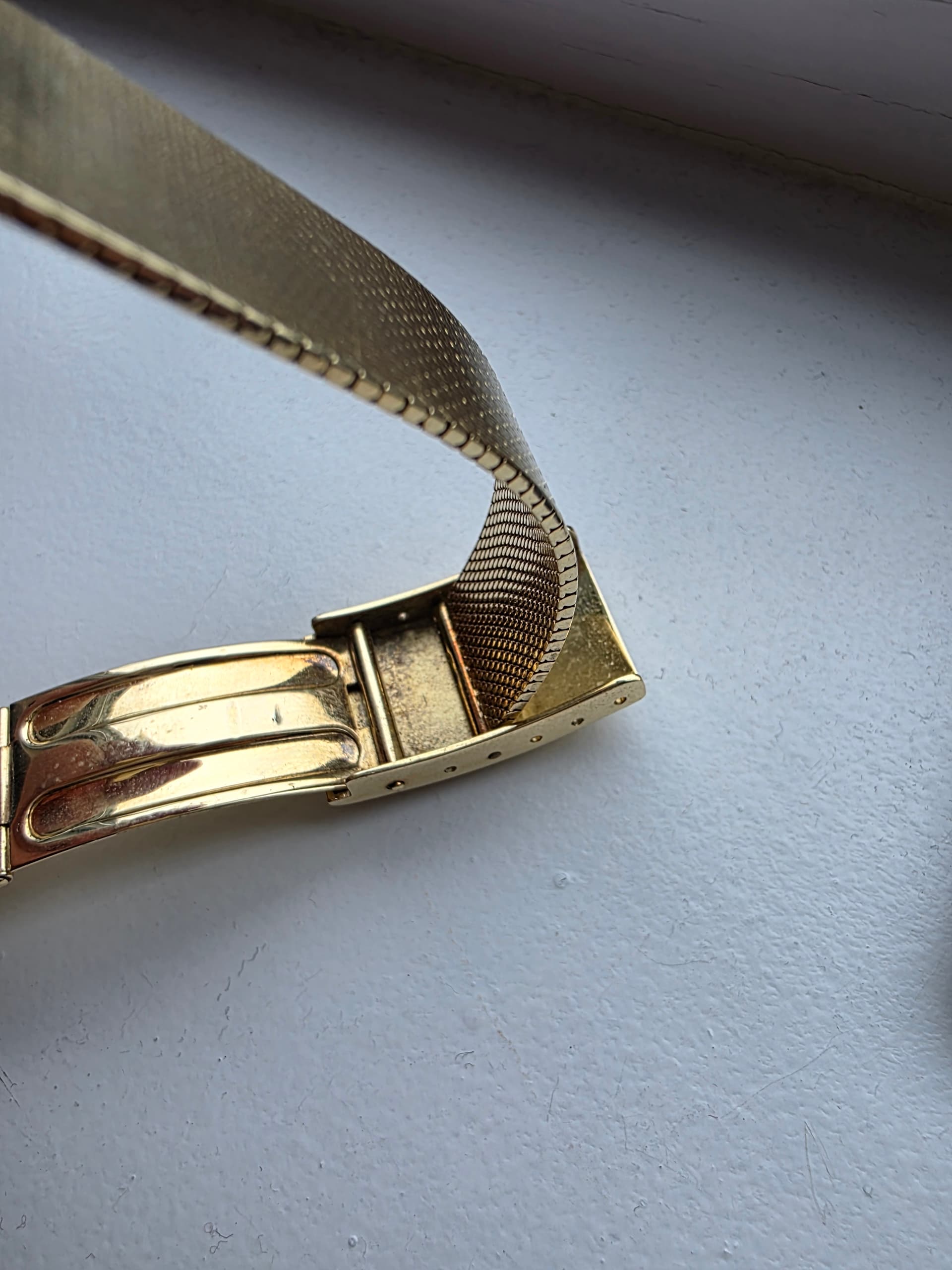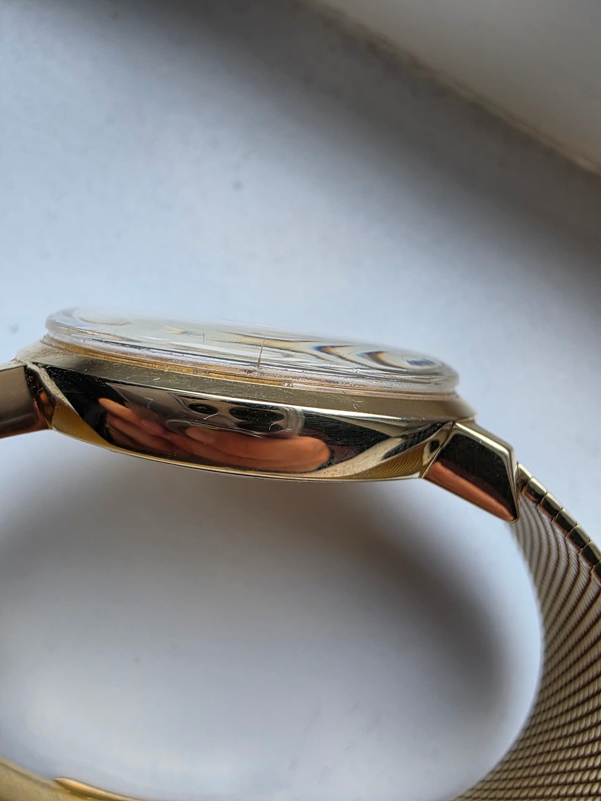 Conditie (krassen, werking etc): een horloge van ruim 50 jaar oud met wel wat lichte krasjes maar niets opvallends. Op de gouden band zitten in bepaald licht ook een paar krassen. Het omega plexi heeft links midden een klein scheurtje. Op de foto gezet. Je voelt het niet met je vinger.