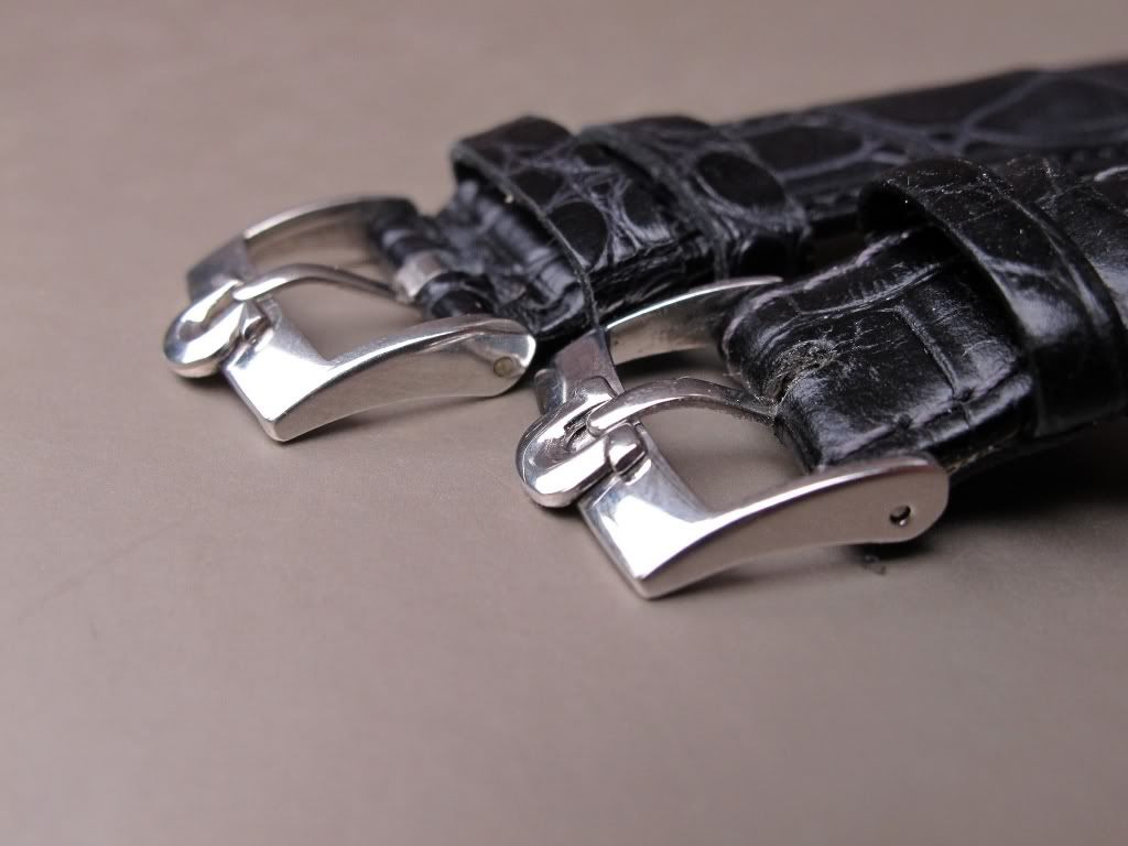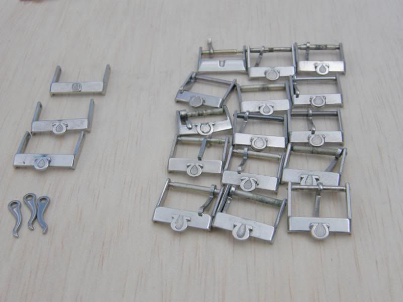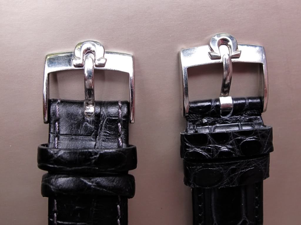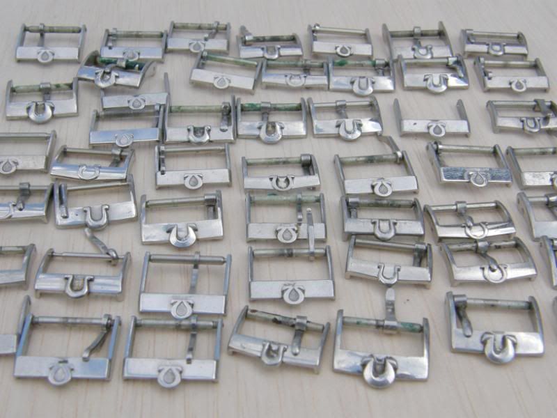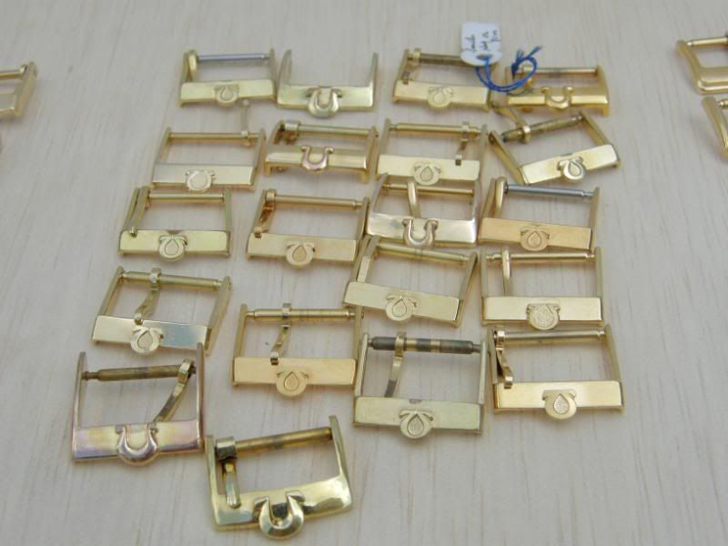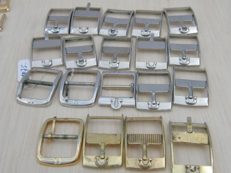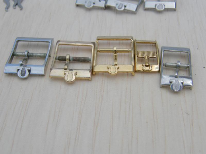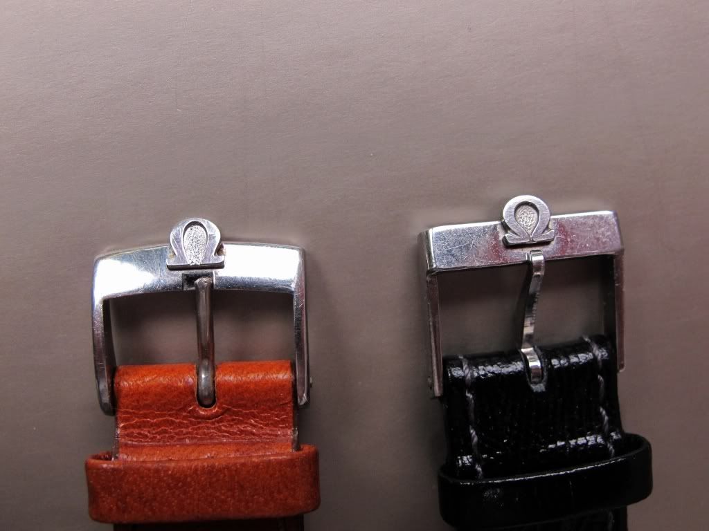 Over de linker doorn heb ik mijn twijfels, niet over de beugel. Let op de rechterdoorn: die heeft een afwijkende vorm. De rechter sluiting kom je naast de uitvoering met een Omega-logo ook tegen met b.v. een Longines- of Zenith-logo; zal wel in dezelfde fabriek zijn gemaakt voor de diverse merken.