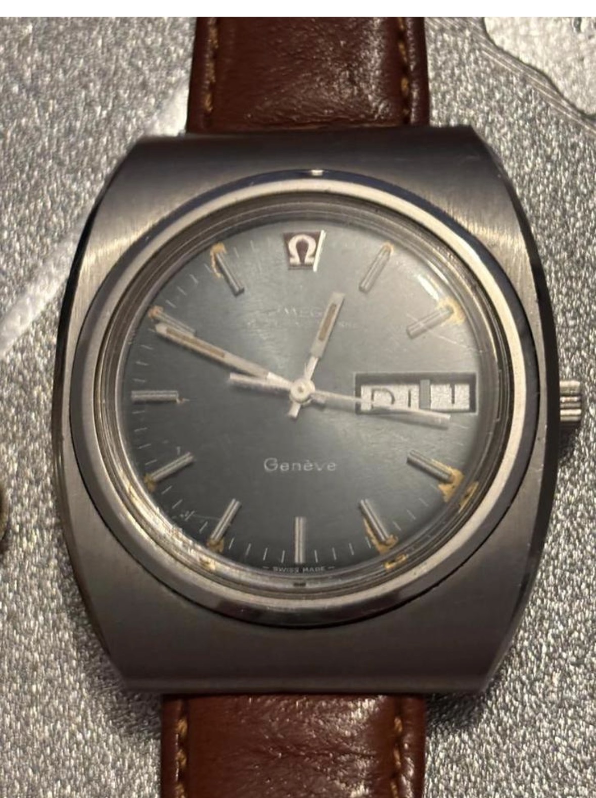 Ik denk dat het qua echtheid wel meevalt - maar dan vooral omdat de wijzerplaat zwaar aangetast is, en dat voorspelt meestal weinig goeds voor het binnenwerk. Tenzij die spotgoedkoop is en je het risico wil nemen zou ik ervan weg blijven. Leuke modellen, dat wel.