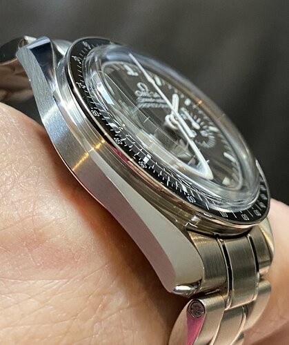 Maar het HEV valt op de pols totaal niet op vind ik. Ja zo op een foto wel, maar dat geldt ook voor de golfjes op de wijzerplaat enzo. Lijkt allemaal heel prominent aanwezig en het valt reuze mee. Het stoort me niet. Totaal anders horloge als de Speedmaster, dat wel. Daarom wil ik ze ook beide. Fijn afwisselen.
