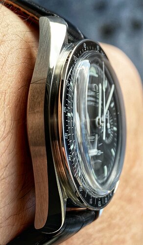 Op leer is het heel comfortabel en leer staat de Speedmaster gewoon geweldig, zeker als het een taperende leren bandje is naar 16mm (extra elegant). Neemt niet weg dat staal natuurlijk ook geweldig staat, ik heb immers gekozen voor een Speedmaster met een stalen band, kunnen afwisselen met leer is geweldig
