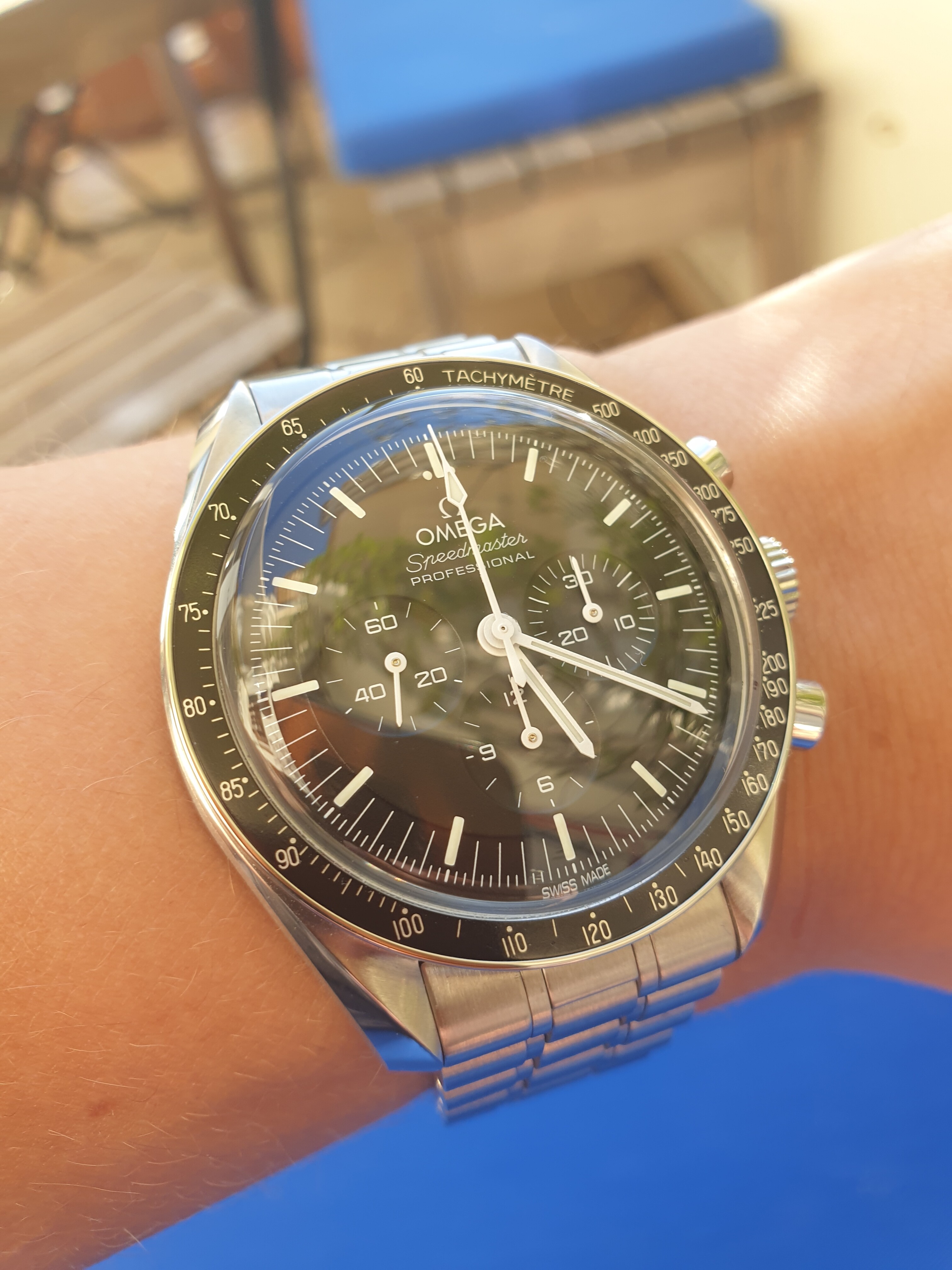 Voor hesalite gekozen omdat ik in de winkel toch meer aangetrokken werd door dat iets gebolde glaasje. Daarnaast was de oorspronkelijk speedmaster op de maan ook hesalite natuurlijk. Niet dat dat voor mij het verschil maakte, maar wel mooi meegenomen stukje originaliteit.