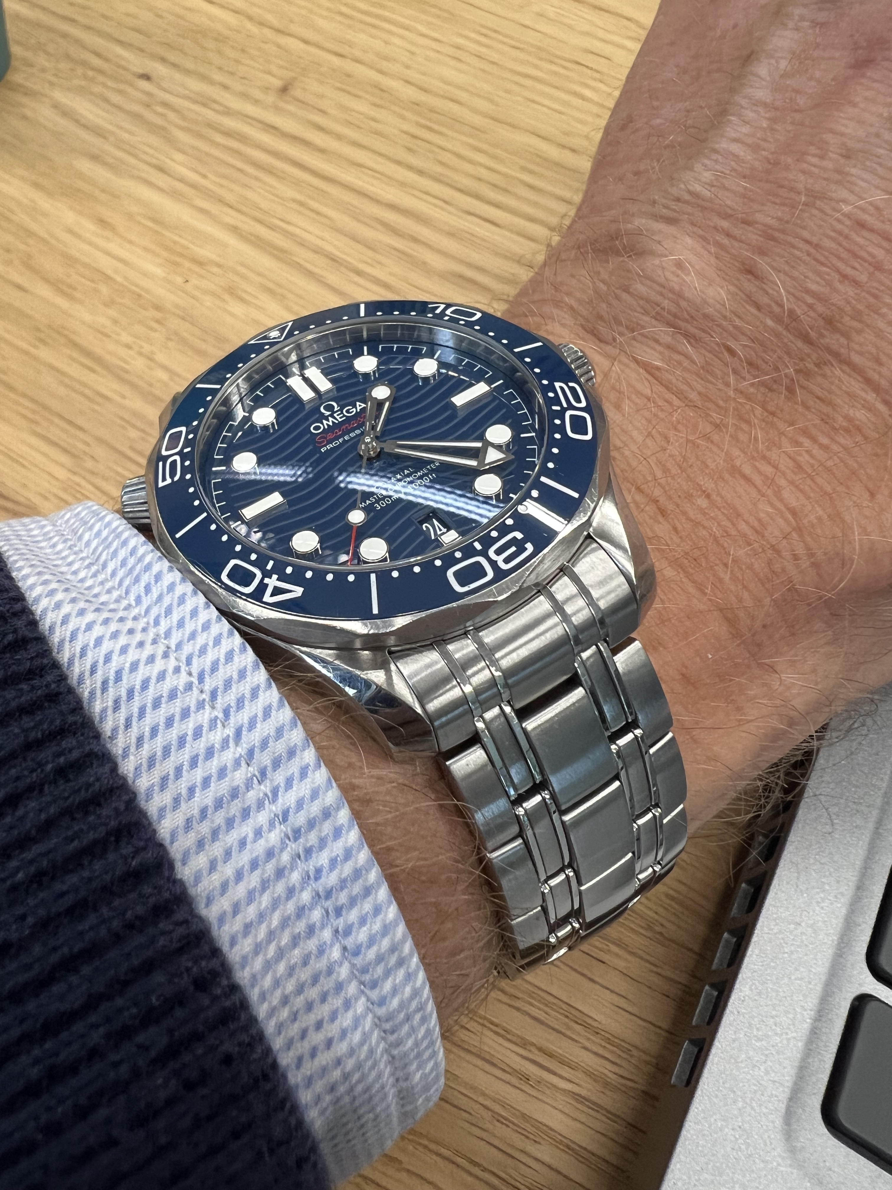 Sinds gisteren de Forstner 1450 op de Seamaster. Vind het persoonlijk goed staan en draagt nog comfortabeler dan de standaard bracelet.