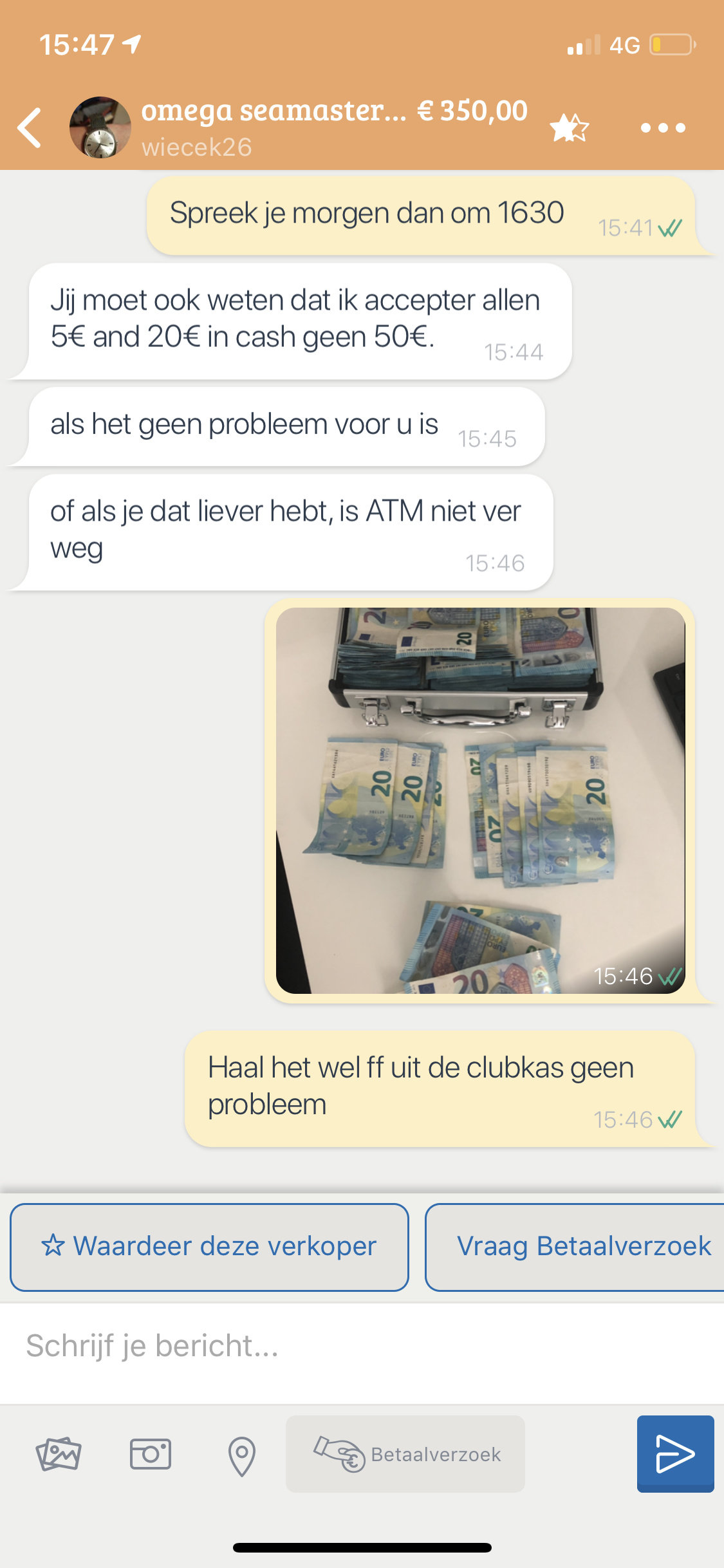Straks is het echt iemand die gewoon en oud horloge wil verkopen, zit jij hem de stuipen op het lijf te jagen