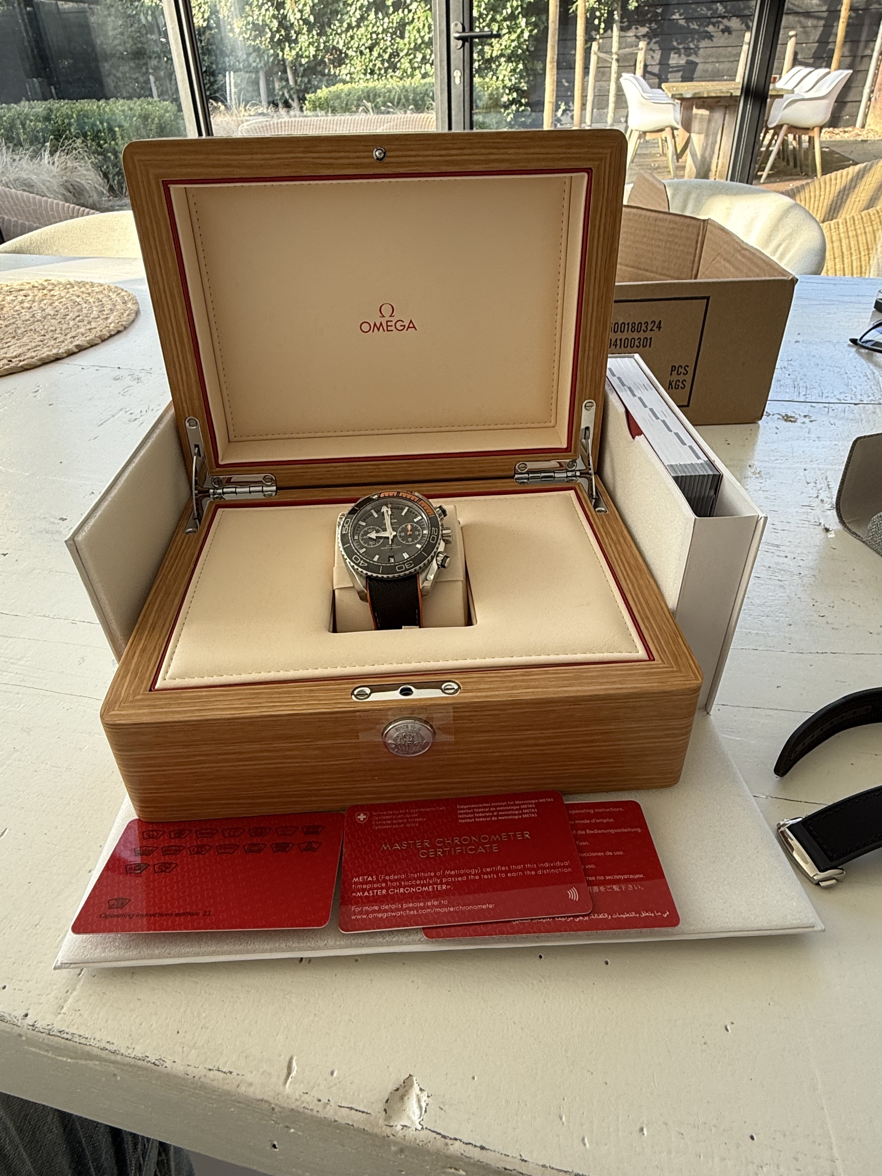 Originele doos en/of eventuele accessoires: aanwezig en extra zwarte rubber ABP band en sluiting