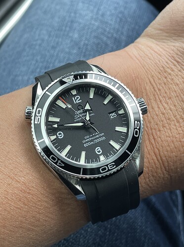 Geeft hem toch een andere smoel dan op de bracelet. Zwarte dial wordt mooi geaccentueerd hierdoor.