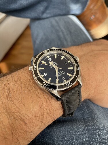 Goede zaak! Ik vond de OEM vooral erg lang en ik houd van enige taper. De combi zwarte band (rubber / tropic / canvas) staat hem erg goed.