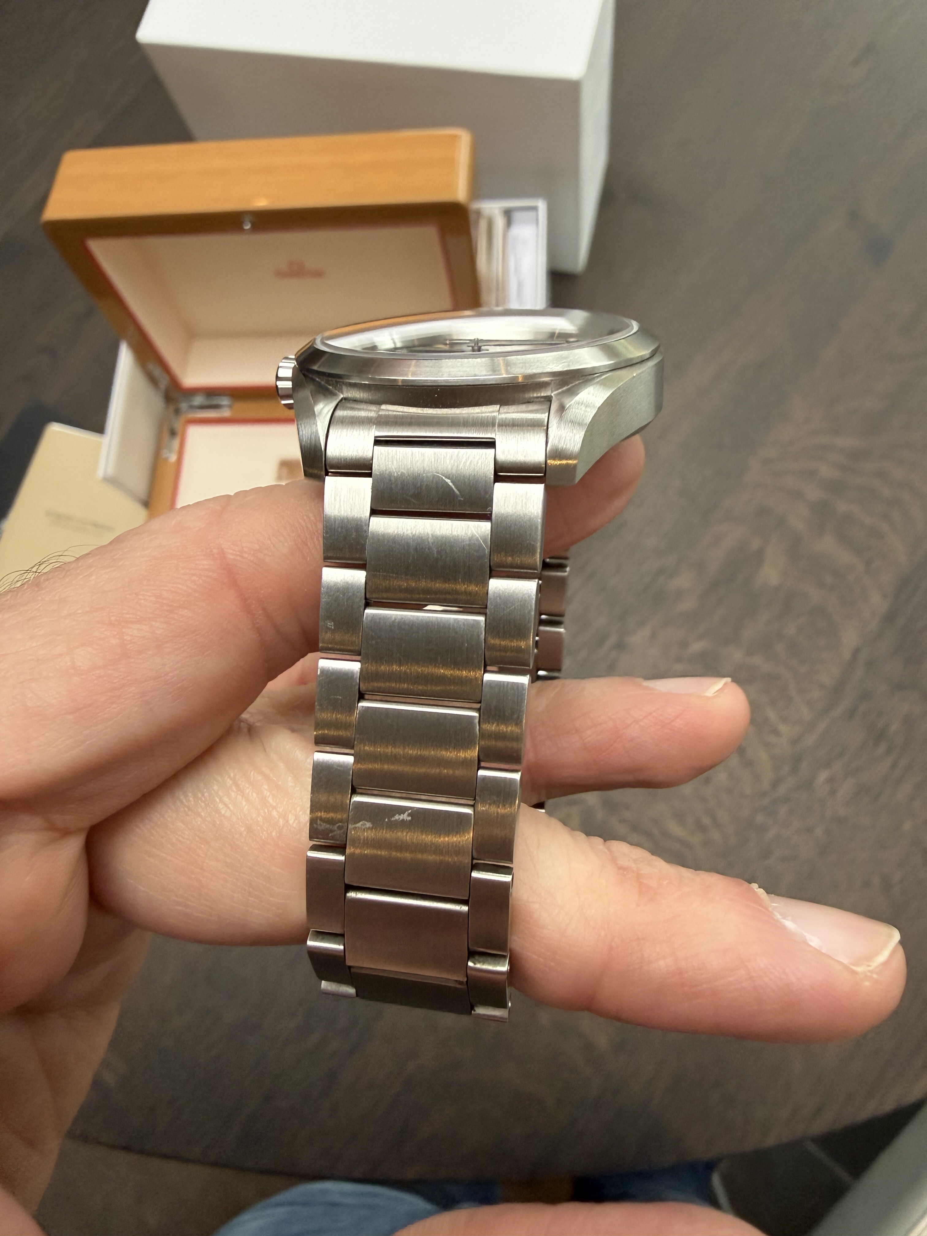 Conditie (krassen, werking etc): zeer goed, veegjes en krasjes op band en bezel, niks dieps. De full brushed afwerking camoufleert het nodige.