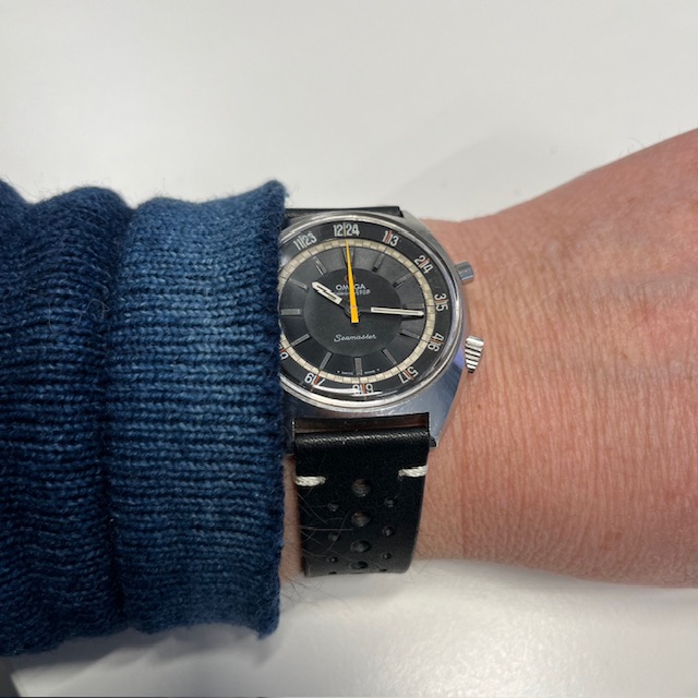 Is veel in zonlicht gedragen gezien de verkleuring van de chronowijzer en de cijfers op de bezel.