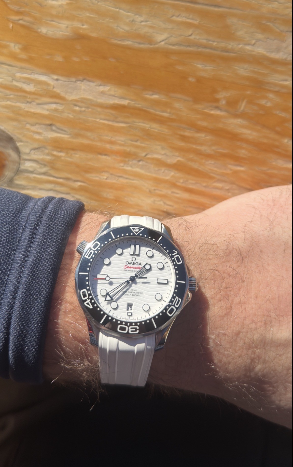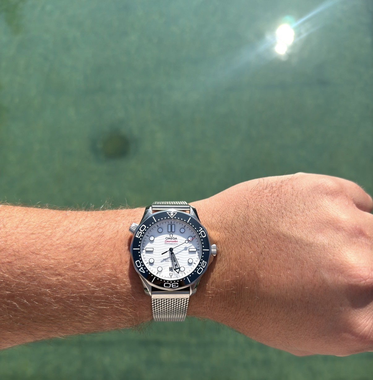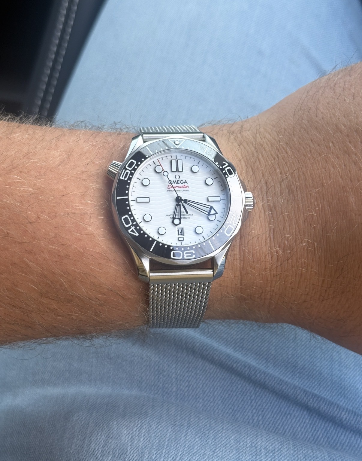 Witte Omega band was een speciale band voor de Olympische Spelen in Parijs origineel van Omega, mesh band is ook origineel van Omega