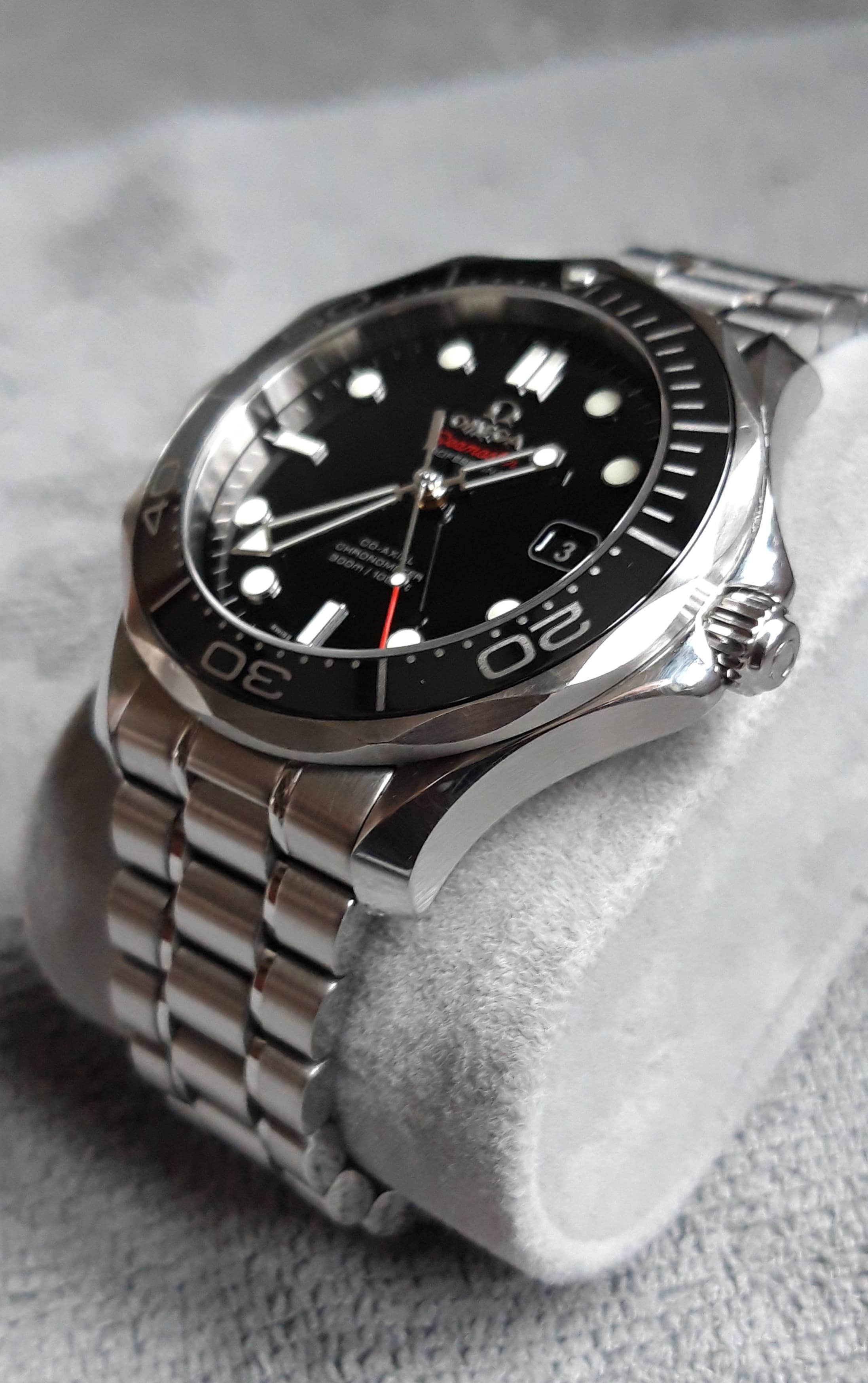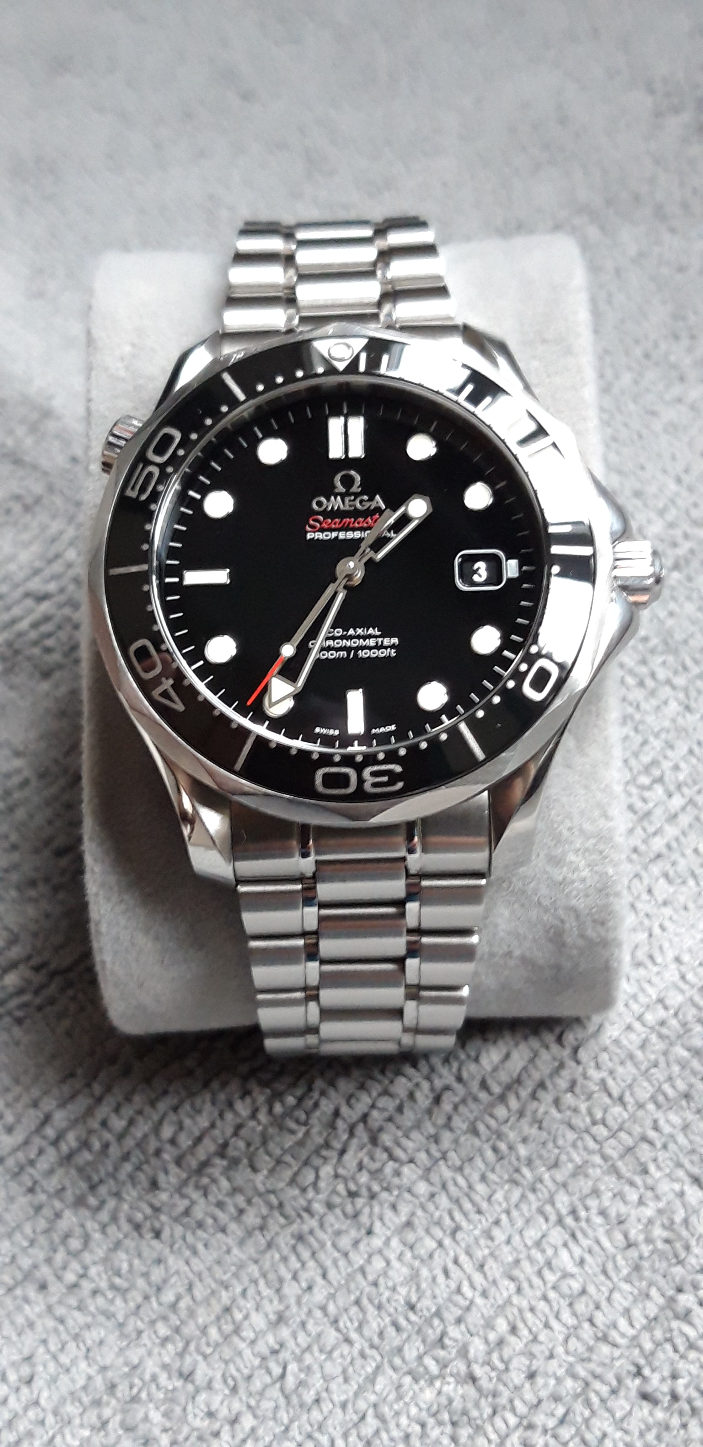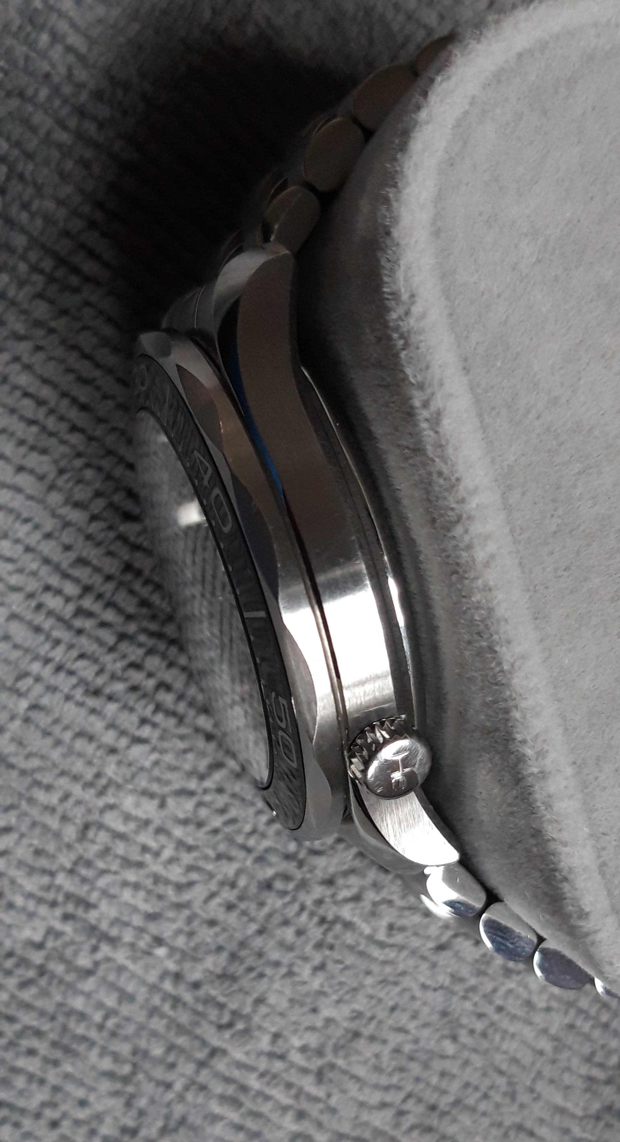 In mijn ogen één van de mooiste uitvoeringen van de Seamaster. Met de mooie strakke wijzerplaat zonder golfjes en het draagcomfort van 41mm. Het rode accent op de plaat, de omrande opgelegde indices en de zwarte datumschijf met chrome cijfers maken het helemaal af.