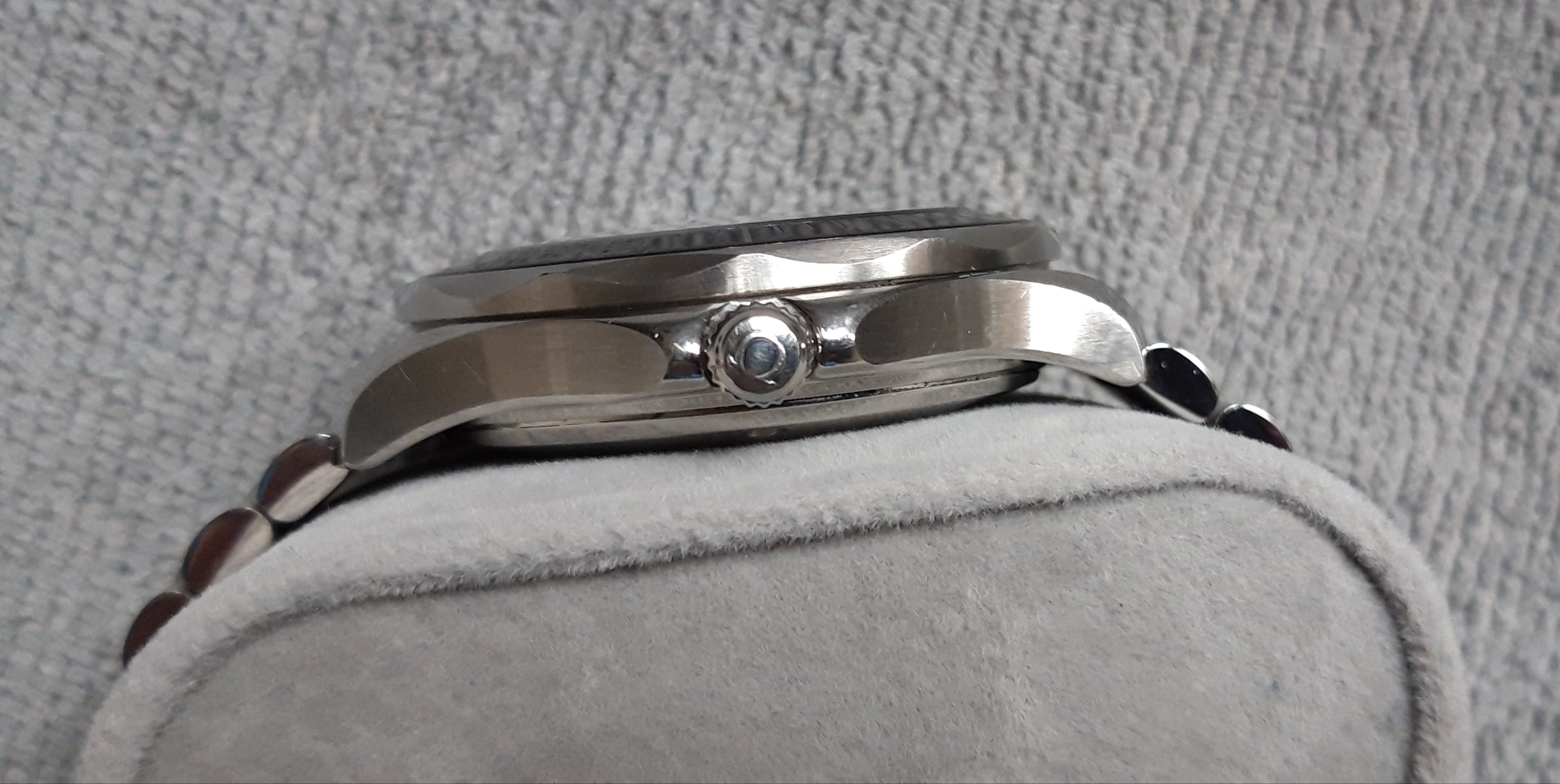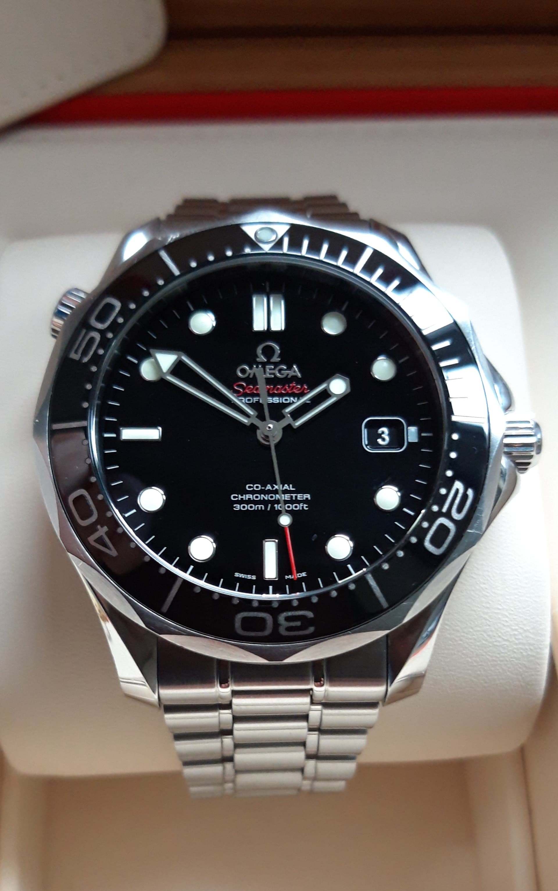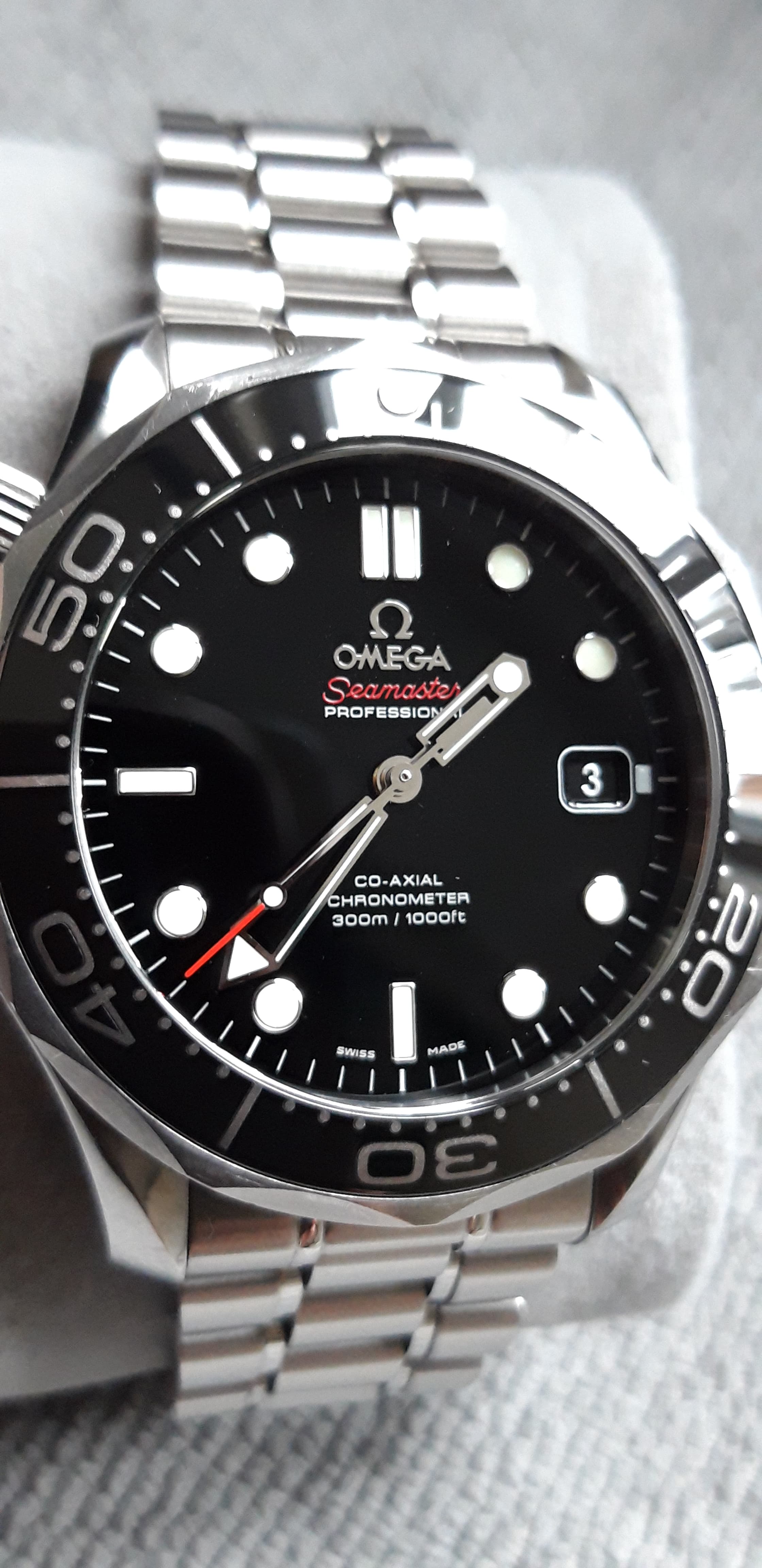 In mijn ogen één van de mooiste uitvoeringen van de Seamaster. Met de mooie strakke wijzerplaat zonder golfjes en het draagcomfort van 41mm. Het rode accent op de plaat, de omrande opgelegde indices en de zwarte datumschijf met chrome cijfers maken het helemaal af.