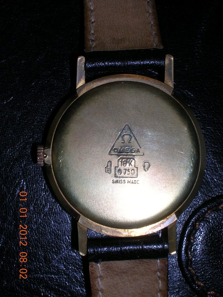 Ik ben nieuw op dit formum.Belg en woonachtig in West Vlaanderen Heb verleden jaar een oude Seamaster gevonden op de rommelmarkt zonder kroon en zeer vuil. Nieuwe niet originele kroon erin en glaasje laten inplaatsen bij een horlogehersteller en zelf langs de buitenkant opgekuist . Langs de achterkant staat een hamertje met cijfer 12 en tevens een minervakop. Eveneens staat er 18KT op vermeld.Horloge is ongeveer 34 mm zonder kroon. Het horloge is rondom goudkleurig.