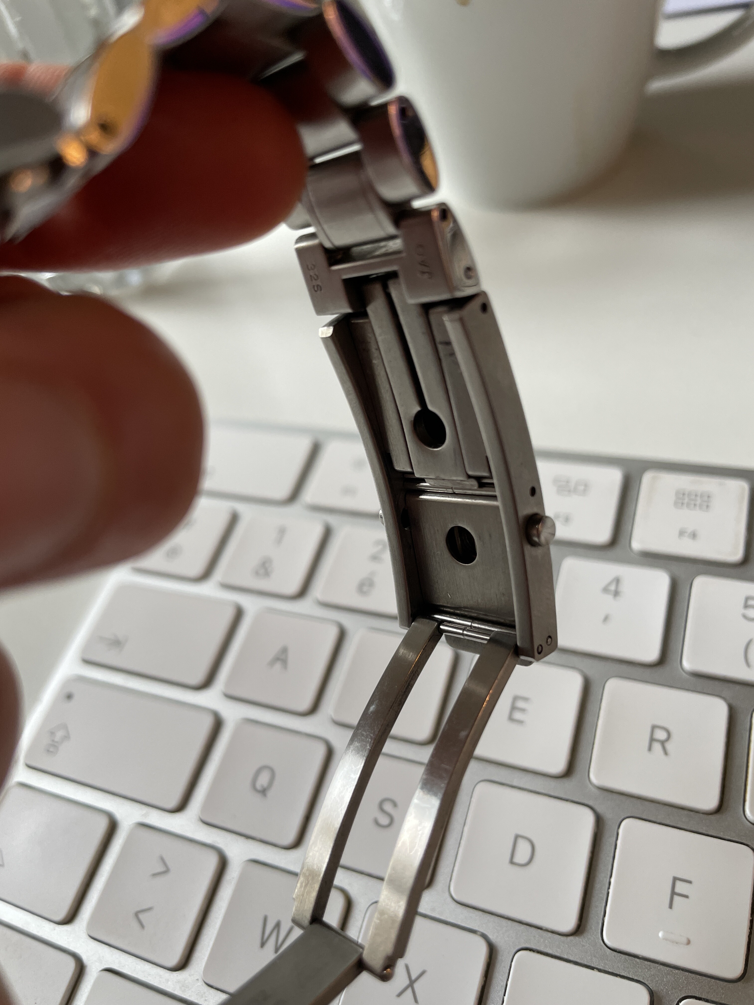 Deze sluiting (1154 clasp?) is de lange variant met zes posities. Ik twijfel nog tussen zes posities zonder diver extension, of 3 posities zonder diver extension.