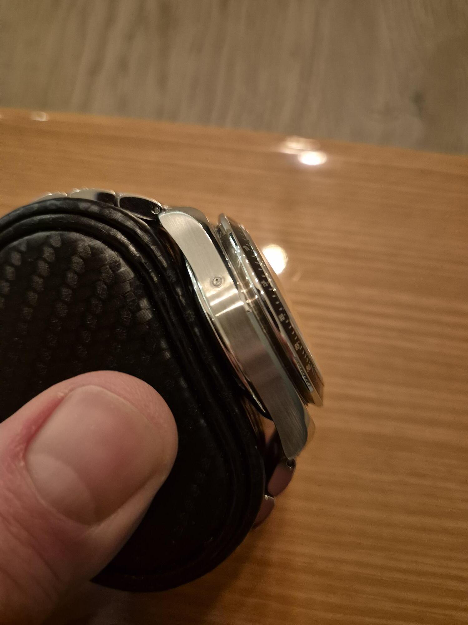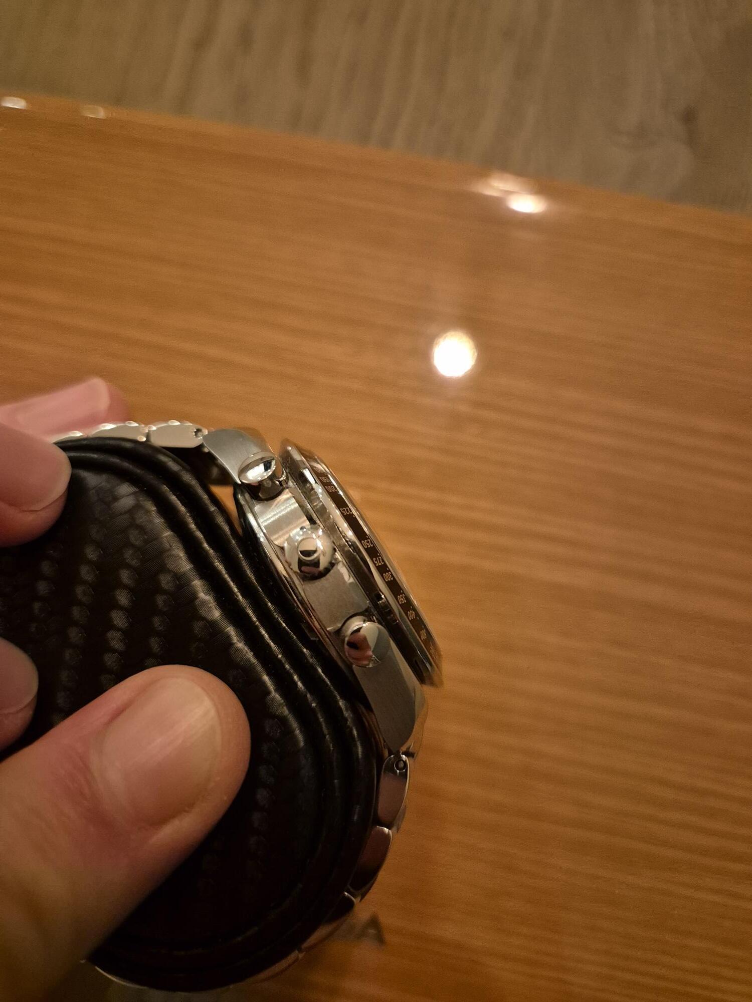 Horloge in nette staat. Service historie niet bekend. Klein deukje in de hoek van de doos, zie foto. Ben toe aan iets anders, vandaar in de verkoop.