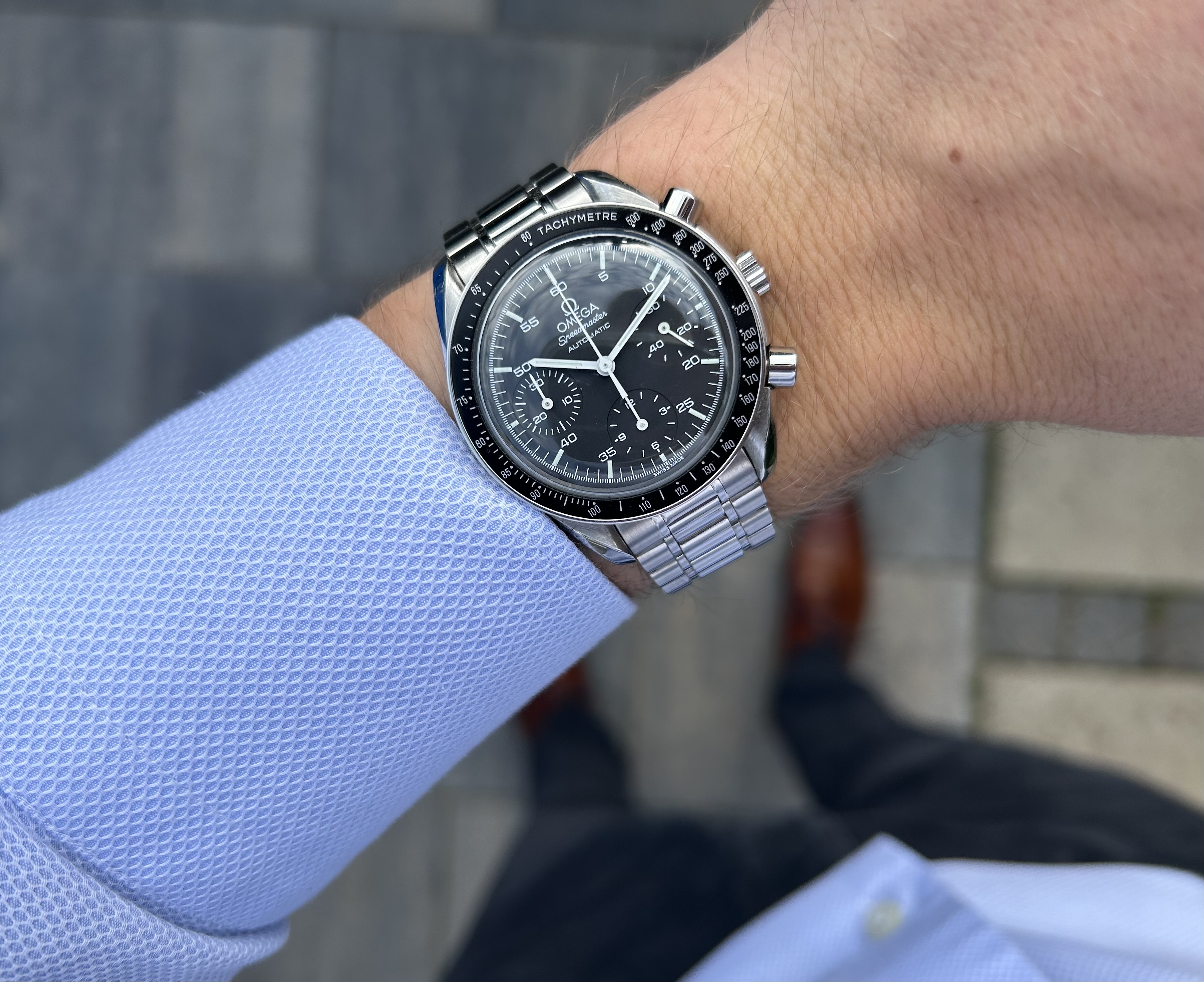 Gelanceerd door Omega in 1988 en discontinued rond 2009. Met tussendoor speciale edities, zoals de gele en rode “Speedmaster Reduced Schumacher” in 1996.
